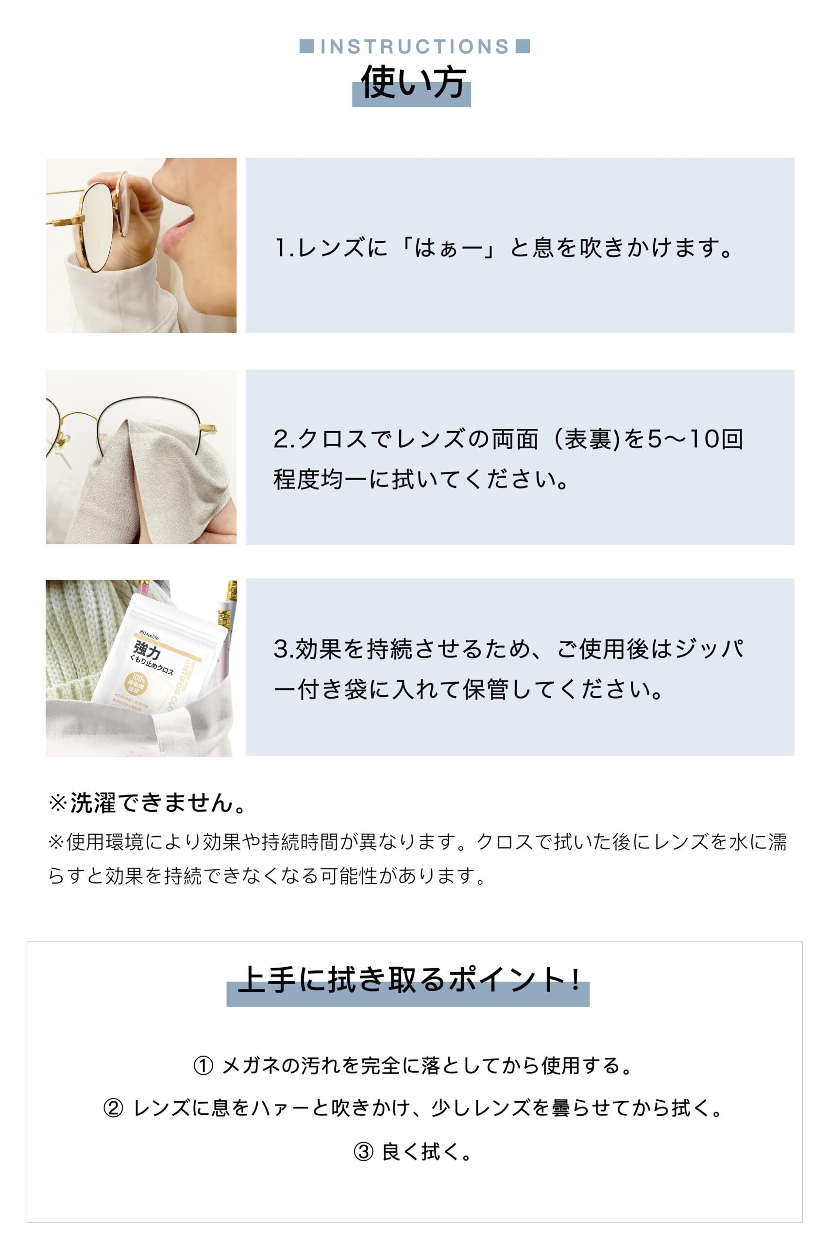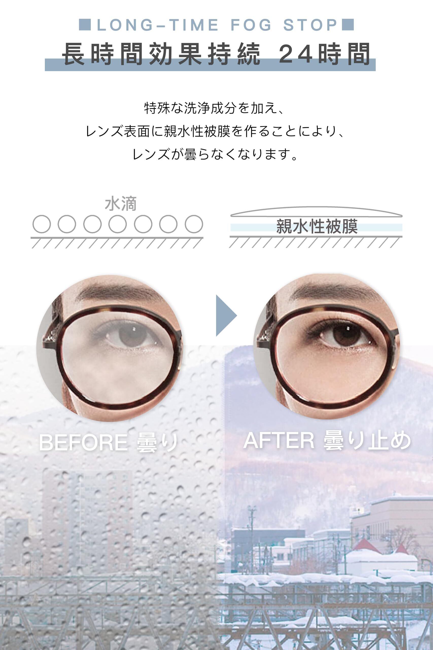 【24時間・長く効果持続】曇り止めクロスは親水性被膜が取れなければ、1日に1回拭くだけで、曇らずにスッキリし、24時間に快適に過ごすことができます(使用環境により効果・持続時間が異なります。くもりどめ被膜後にレンズを拭いたり、水に濡らすと曇り止め効果がなくなります)