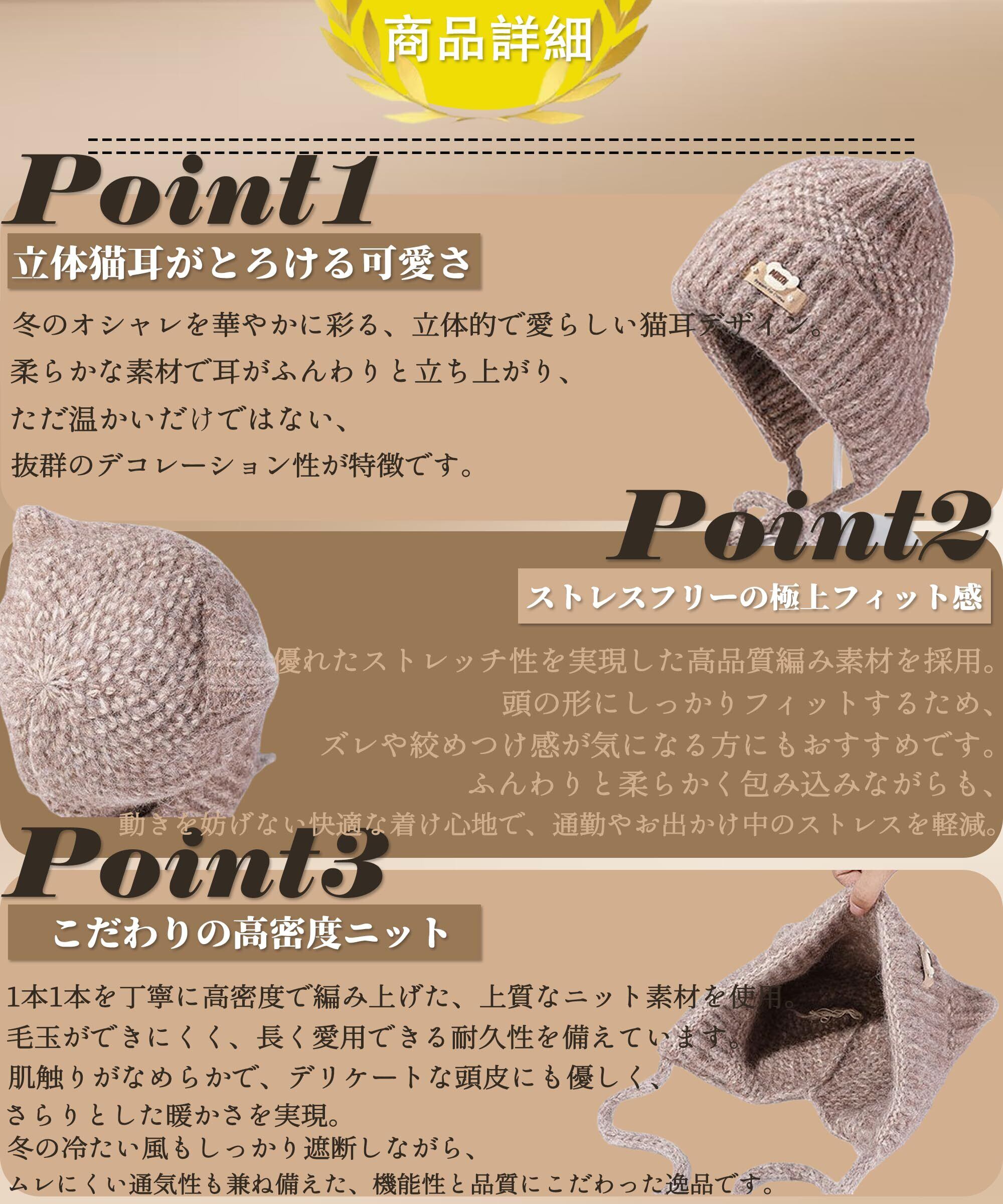 [Karsaer] ニット帽 レディース 冬 ふわふわ 帽子 暖かい 防寒 厚手 かわいい 猫耳 小顔効果 肌に優しい 伸縮性 通勤 通学 G0225
