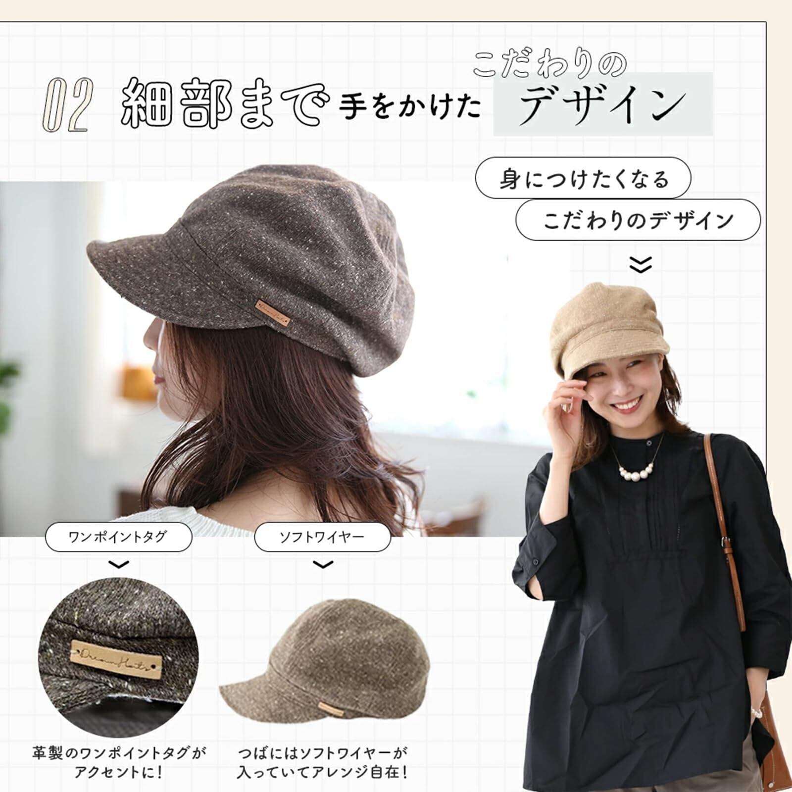 [DreamHats] キャスケット レディース (快適フィットで暖かい) 秋冬 UVカット (アレンジ自由なワイヤー入りのつば) 帽子 女性用