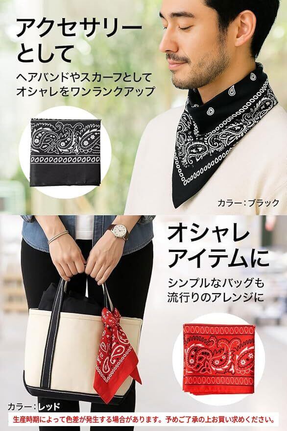 [Double Peace] バンダナ 大判 54×54cm 大容量 20枚セット 「みんなで使える!カラフル&速乾 ペイズリー柄」