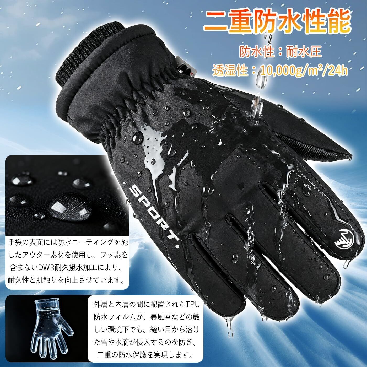 【二重防水構造で全天候対応】高性能TPU防水フィルムを内蔵し、耐水圧10,000mmを実現。縫い目には特殊なシーリング加工を施し、水の侵入を完全にブロック。表面の防水コーティングが雨や雪を効果的に弾きます。長時間のスキー・登山・サイクリングなどのアウトドア活動でも安心して使用でき、悪天候でも手を乾いた快適な状態に保ちます。