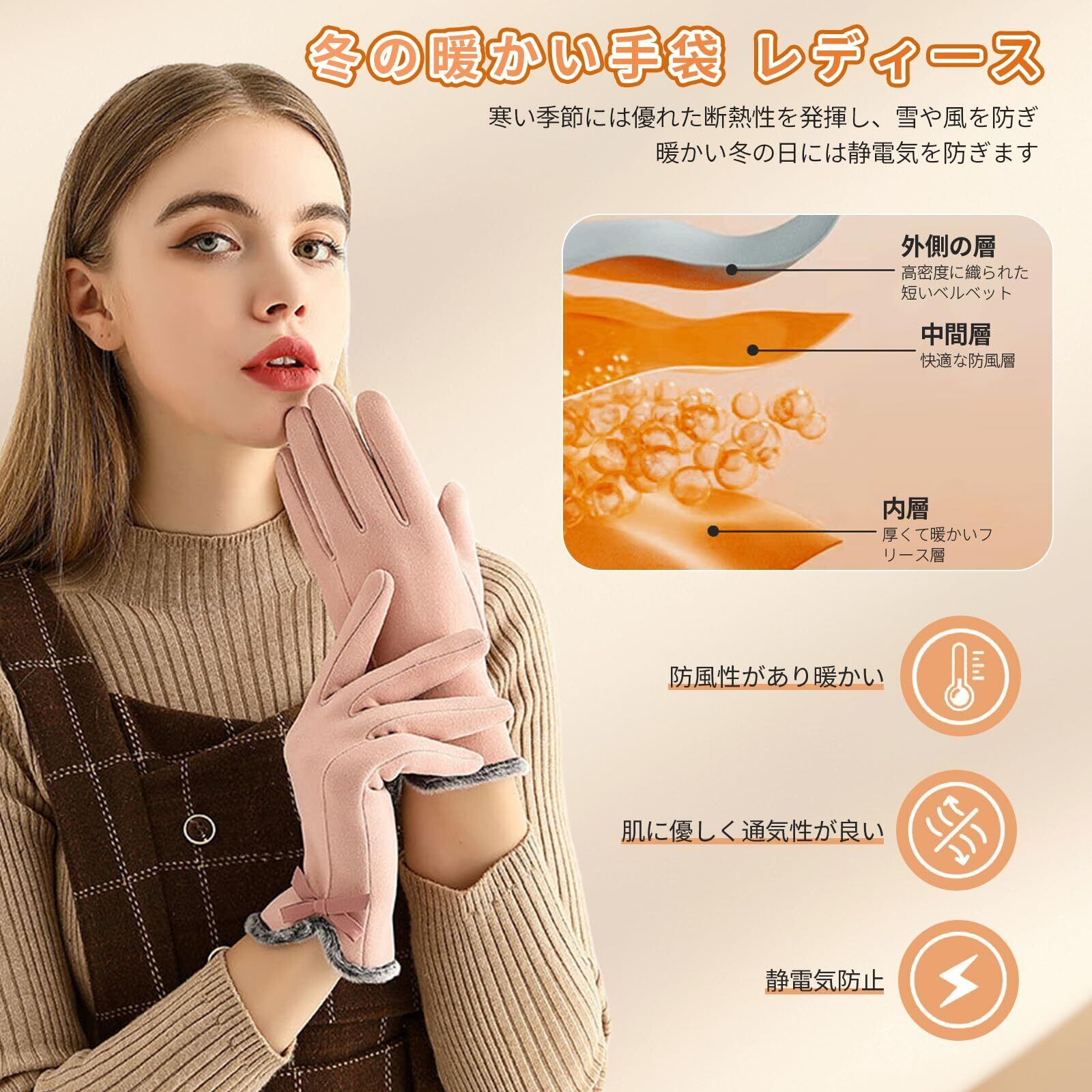 [雲見] 手袋 レディース 冬 裏起毛 360度防風保温 防寒グローブ スマホ対応 防寒手袋 女性 暖かい 軽量 柔らか 自転車 冬手袋 クリスマスギフト 通勤 通学