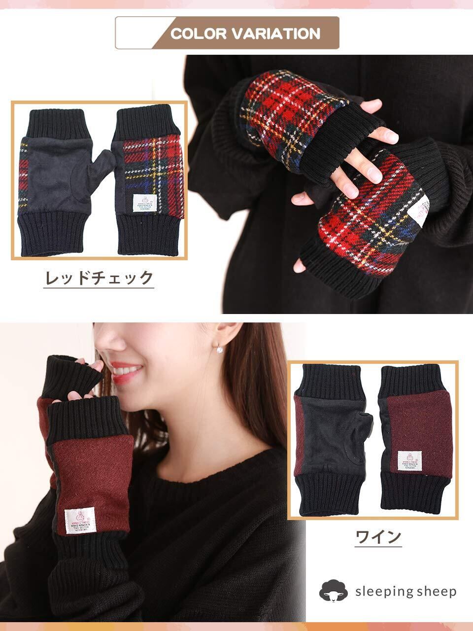 [スリーピング シープ] Harris Tweed ハリス ツイード ミテーヌ 指なし手袋 裏ボア ヘリンボーン ウール レディース アームカバー ケース付