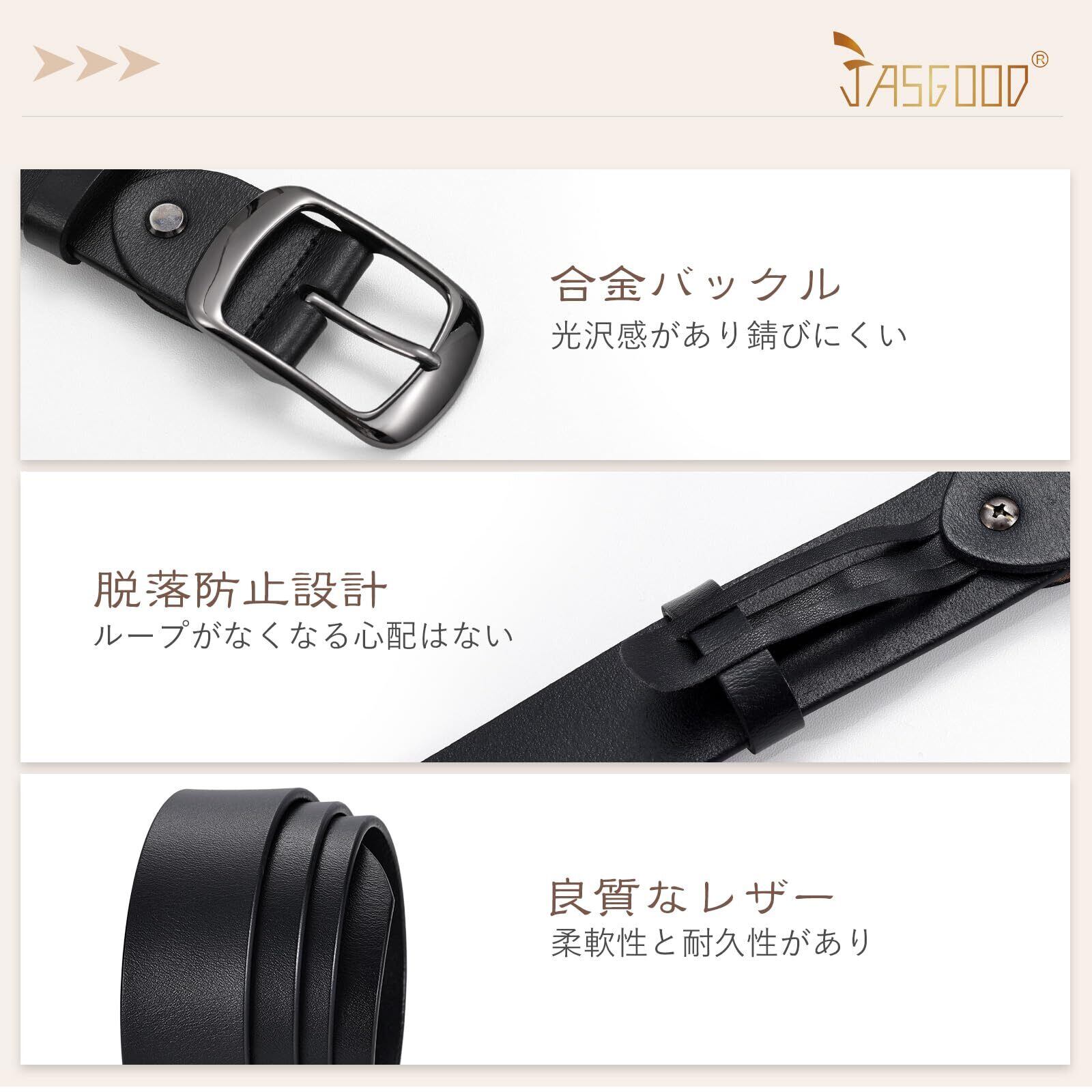 [JASGOOD] レディースベルト 太め 革 女性用ベルト 耐久性 柔らかい カジュアルベルト 全長110cm