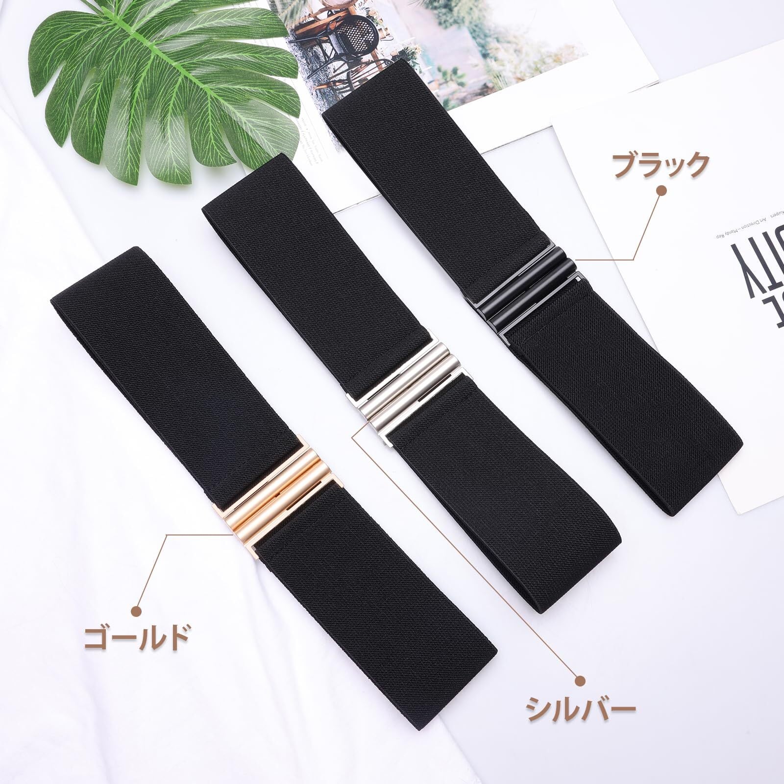 【デザイン】:3色の合金で作られたフラットなバックルが使えます:ブラック、ゴールド、シルバー。女性向けのドレス、コート、セーターに使える。いつものワンピースがすっきりスタイルに変身。着脱もらくらく!!!