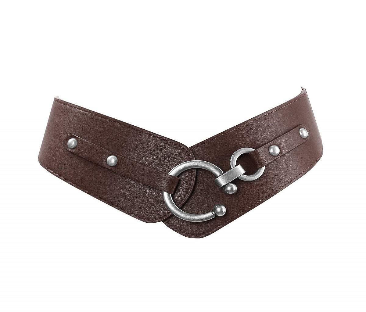 [JASGOOD] レディースベルト レザー 幅7mm 太 ゴム伸縮 サッシュベルト 大きいサイズ 飾り カジュアル