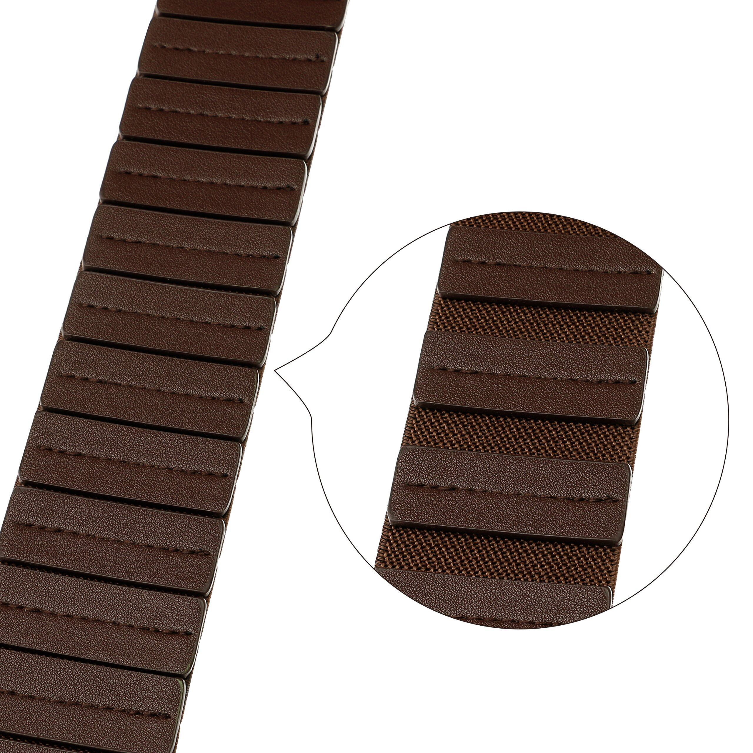 【素材と耐久性】高品質な合成皮革と伸縮性ゴム、そして合金製のバックルを使用した、レディースの太めベルトです。耐久性に優れており、長く愛用していただけるアイテムです。