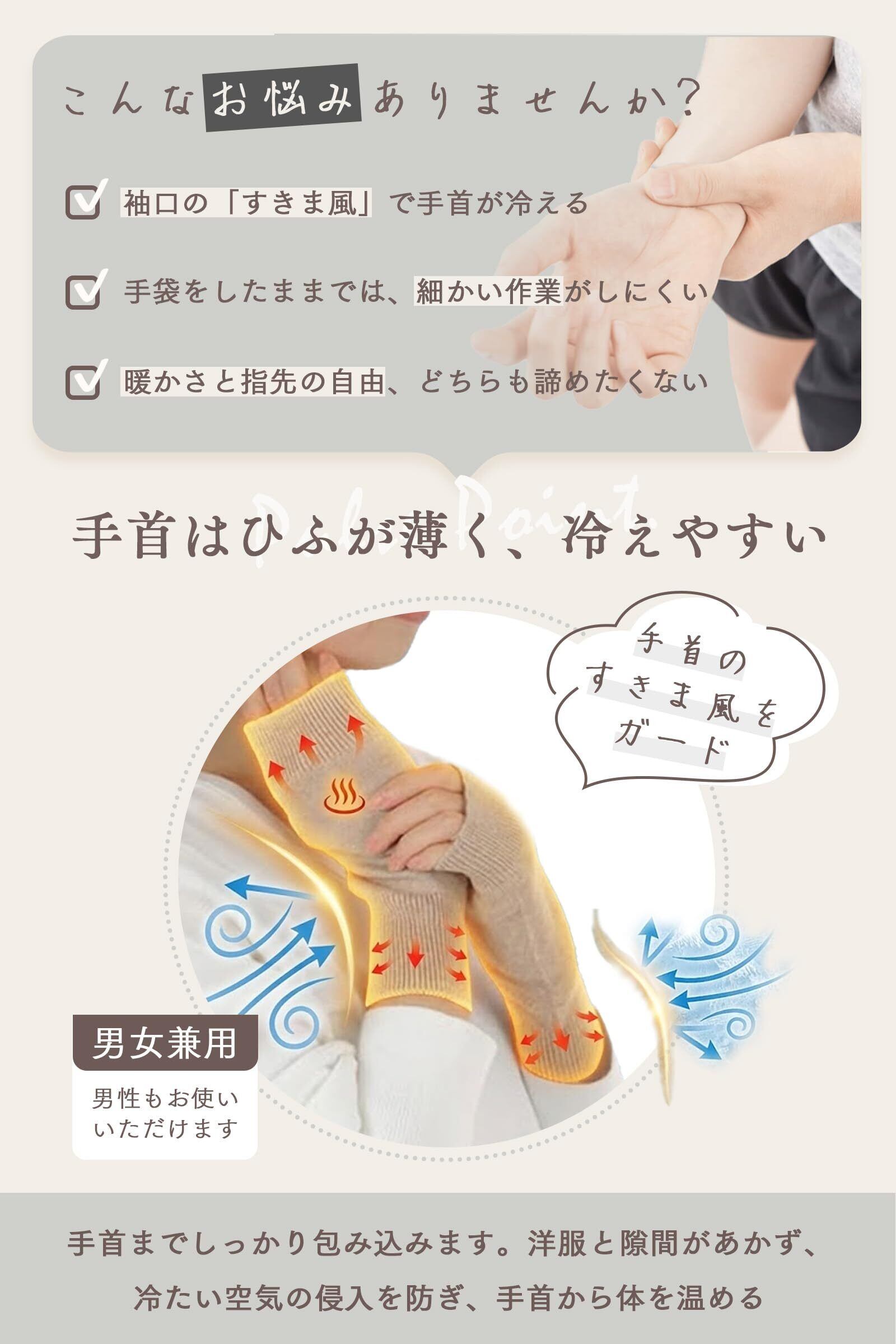 【指先フリー・冬の作業も快適】 普通の手首ウォーマーと違い指先が出るデザインなので、家事、キーボードのタイピング、スマホ操作、書き物など、指の繊細な動きを妨げません。冷えやすい手首を優しく温めながら、冷たいデスクやPCとの接触を遮断。冬のオフィス作業や在宅ワークに冷え対策アイテムです