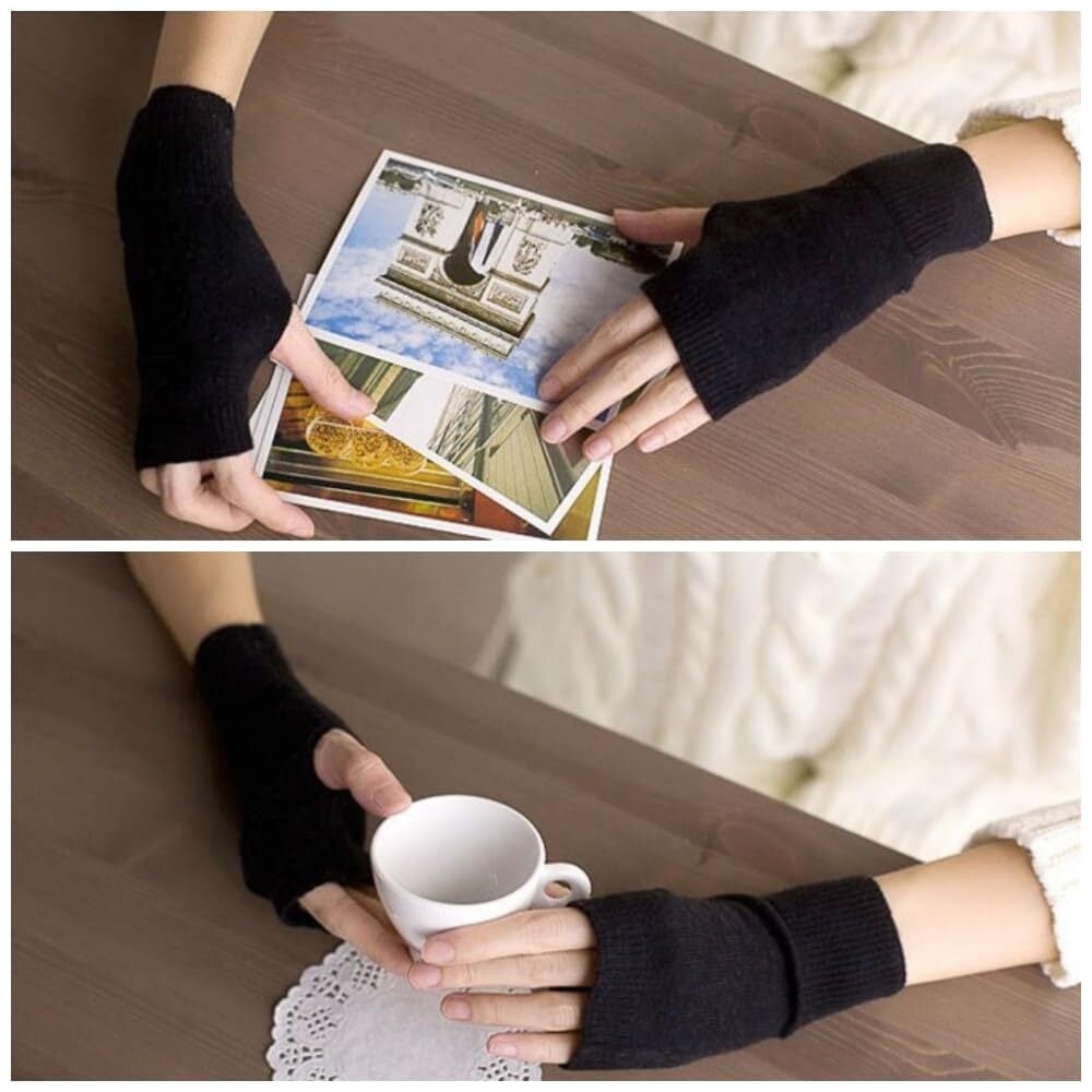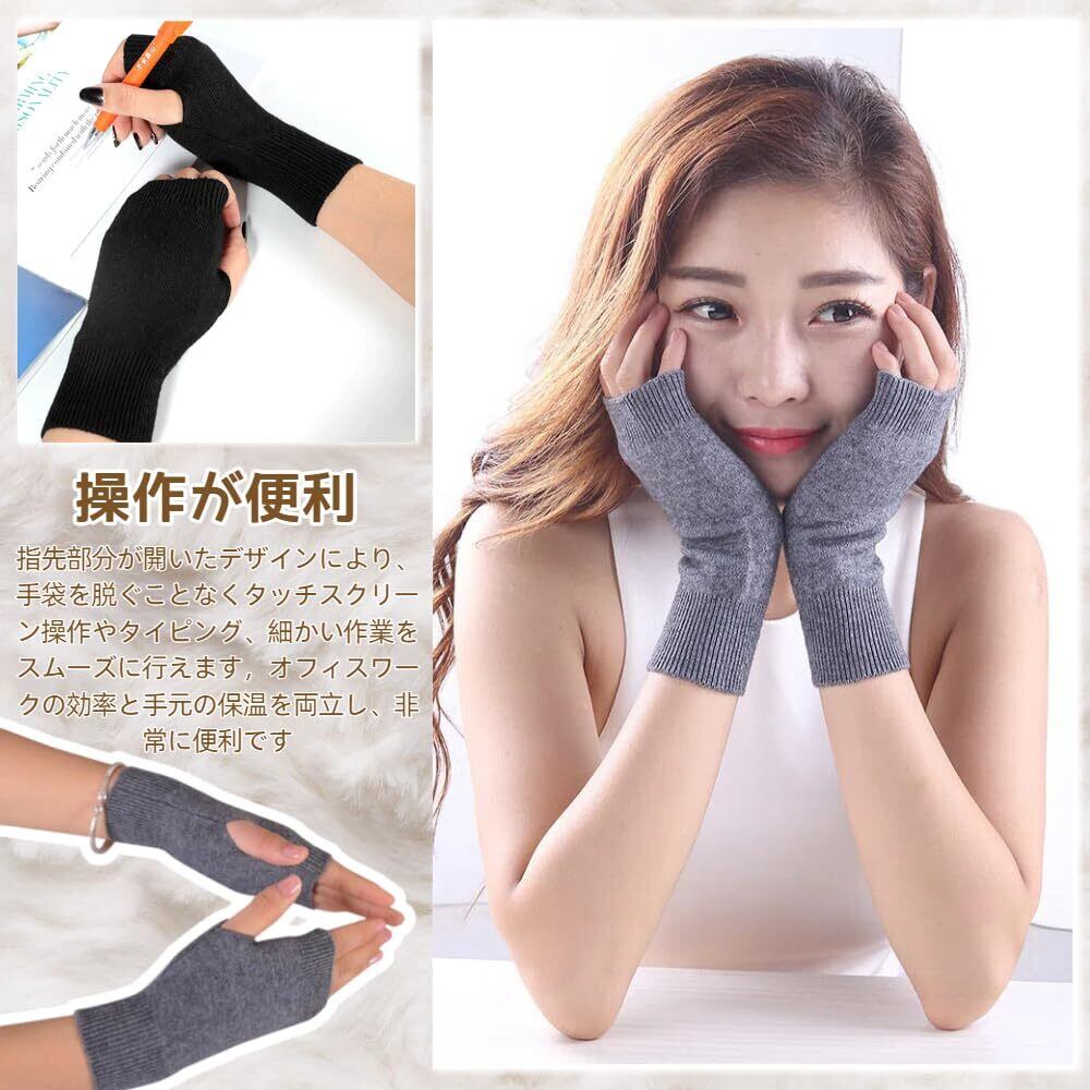 【指先オープンデザイン】指先部分が開いたデザインにより、手袋を脱ぐことなくタッチスクリーン操作やタイピング、細かい作業をスムーズに行えます,オフィスワークの効率と手元の保温を両立し、非常に便利です。