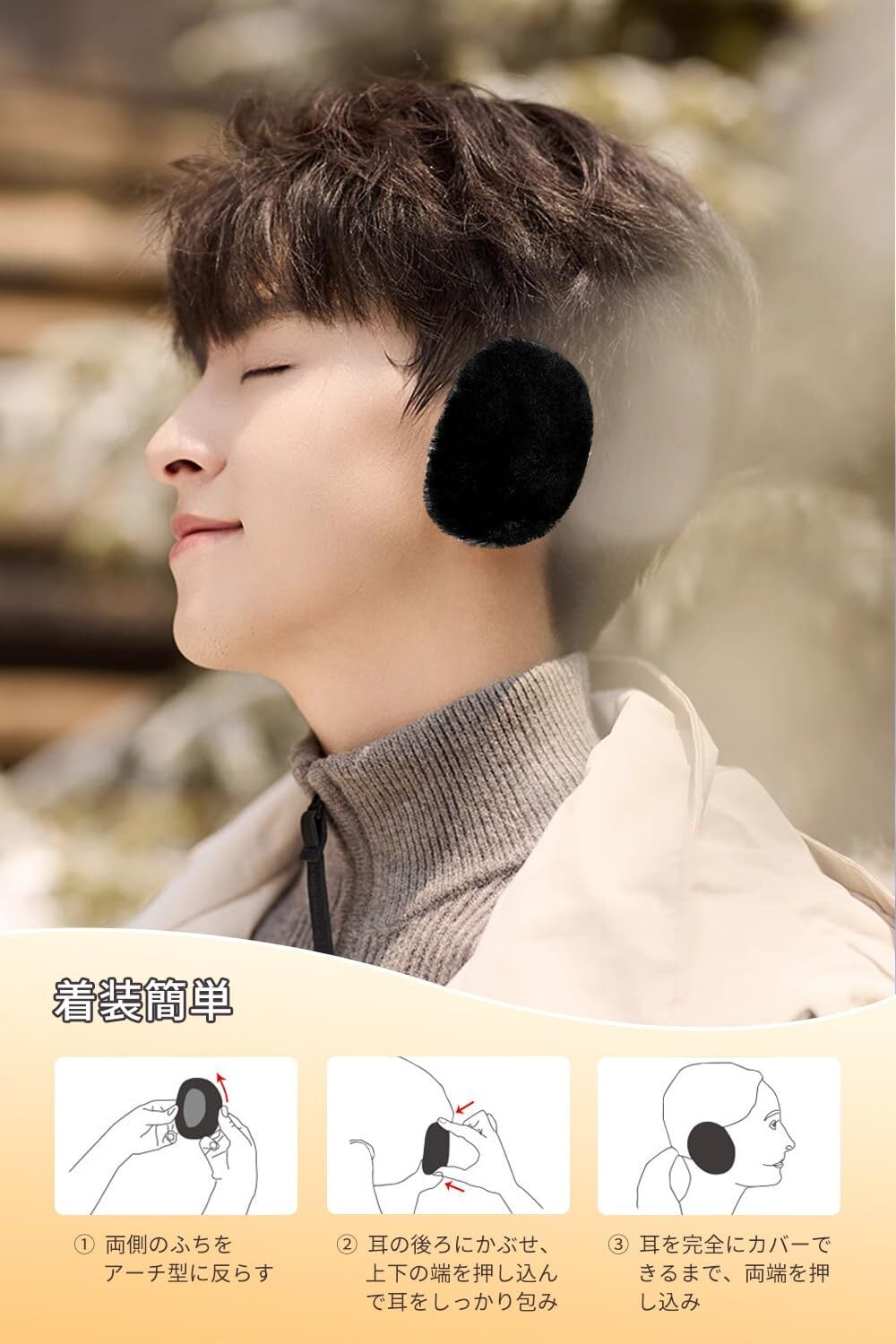 【装着簡単 髪型が崩れにくい】簡単3ステップ:①両側のふちをアーチ型に反らす②耳の後ろにかぶせ、上下の端を押し込んで耳をしっかり包み③耳を完全にカバーできるまで、両端を押し込み。特殊シートスプリングの働きにより、耳とぴったりとしたフィット感、通勤、通学、散歩、激しい運動でもズレにくい!フレームがないので、髪型の崩れを気にする心配がありません。