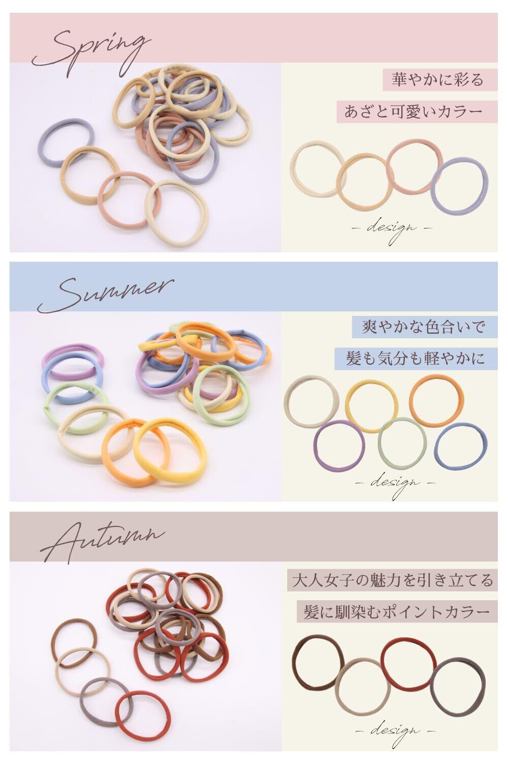 【商品仕様&セット内容】 ゴム直径:約4.5cm、太さ:約8.0mm。 ベージュ・グレー・グレージュ・イエロー・ブラウンの5色×各4本、計20本セット。切れにくい高耐久ゴムで、毎日使っても長持ちするお得なセットです。