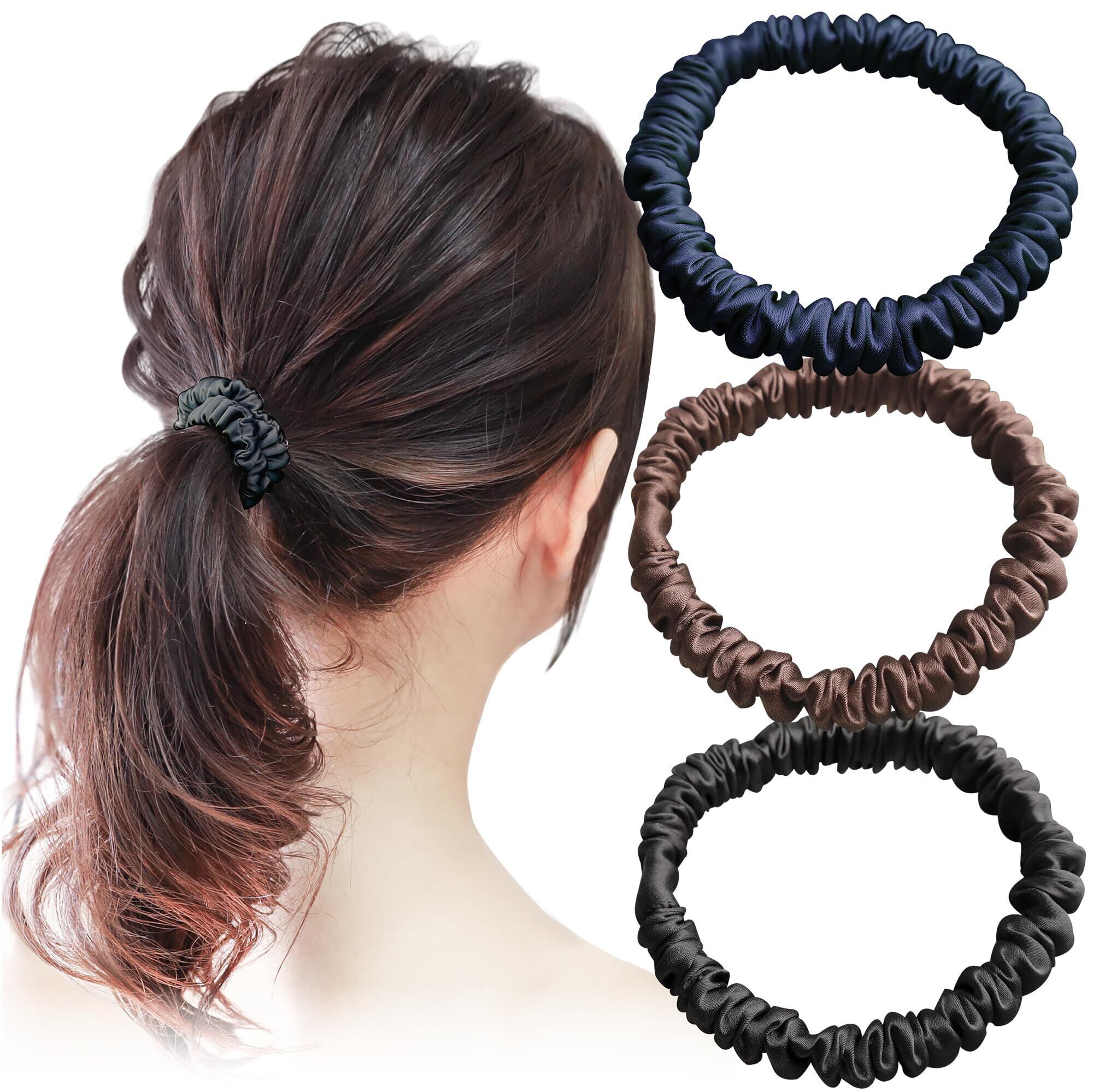 美容師監修 ヘアゴム シュシュ シルク 100% 髪にやさしく跡がつかない 髪ゴム シーン別で使える 3個セット (アソートD)