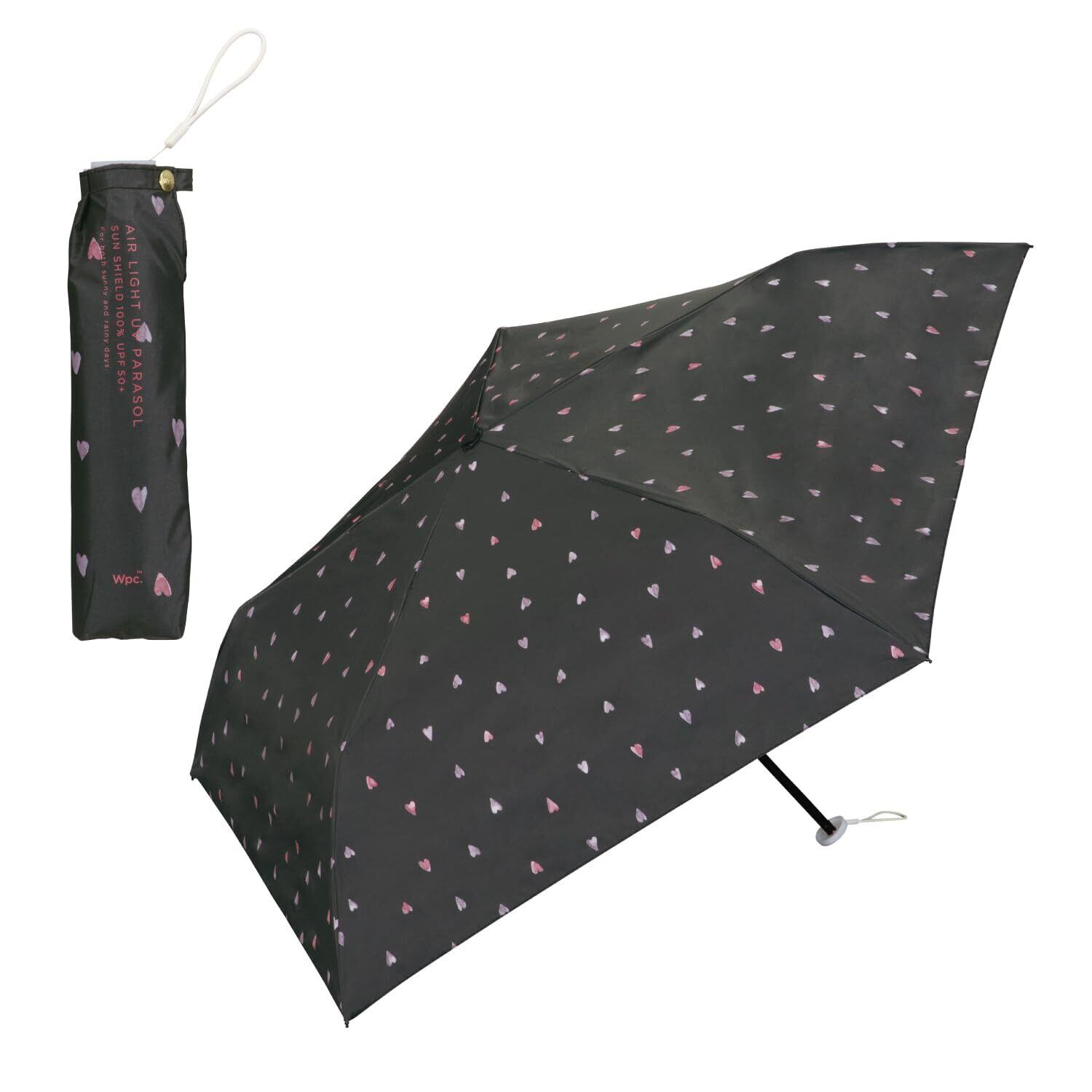 【2025】Wpc. 日傘 遮光軽量 水彩ハート ミニ チャコール ≪遮光100% /UVカット99.9% /UPF50+/晴雨兼用≫ 折りたたみ傘 軽量 通勤 通学 旅行 オシャレ 可愛い 女性 レディース スリム 軽い 801-17046-102