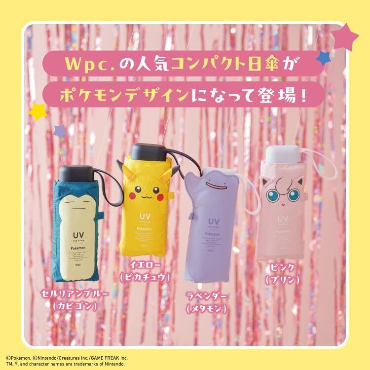 Enjoy adveture with Pokémon雨の日も晴れの日も お気に入りのパートナーと楽しく 冒険へでかけよう!Wpc.の人気コンパクト日傘がピカチュウ・プリン・メタモン・カビゴンのデザインとして登場!袋は半立体になっており、細部までこだわりを感じる仕上がりに。傘本体には大きめにポケモンがプリントされており、遠くからでも目を惹くデザインです。