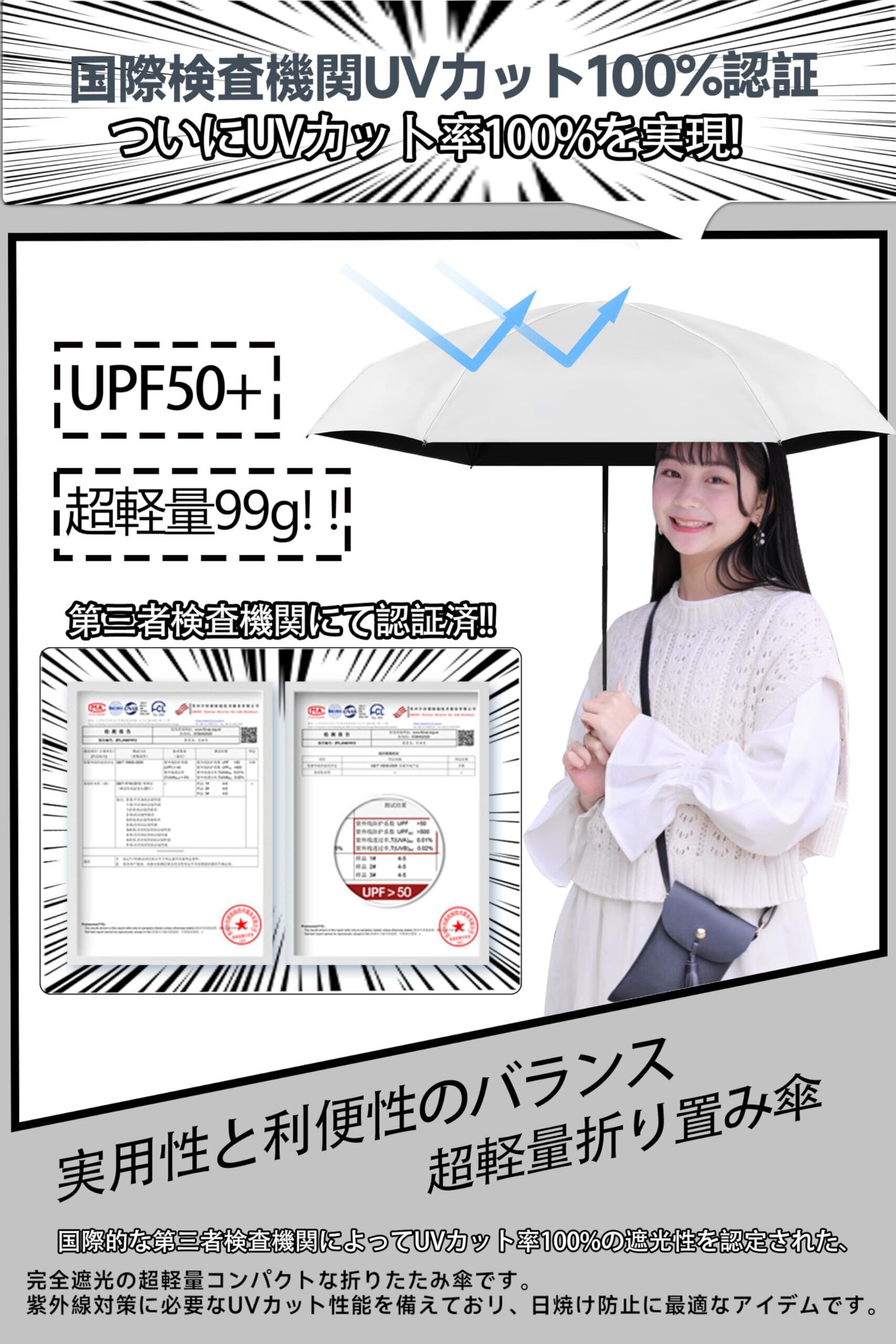 【超軽量&携帯便利】 折りたたみ日傘フラットなデザインで、バッグに簡単に入れることができます。折りたたんだ厚さはわずか3cm、長さは20cm、重さは約99gです。 超コンパクトボディ 使用 携帯に便利!全天候対応でき、雨の日も雪の日も晴天も使えます。男女兼用ワンタッチ り畳み傘。通学、通勤、遠足、旅行,出張などの場合がご利用できます。