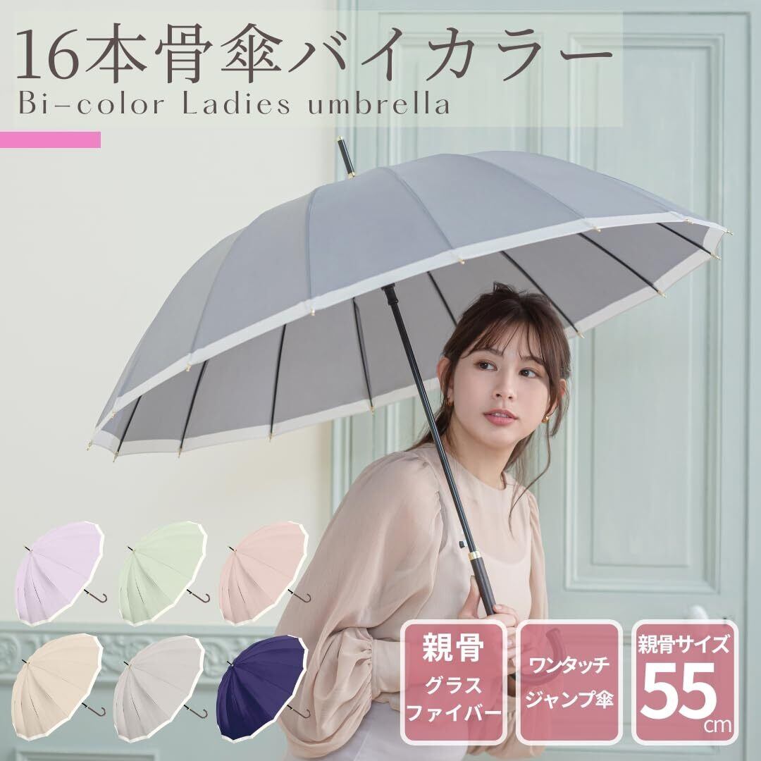 【特価セール】中谷-傘 婦人 長傘 16本骨 ミントグリーン バイカラー 親骨55cm 無地 傘 ワンタッチ ジャンプ式 グラスファイバー レディース 女性 大きい 安い 丈夫 高強度 16本