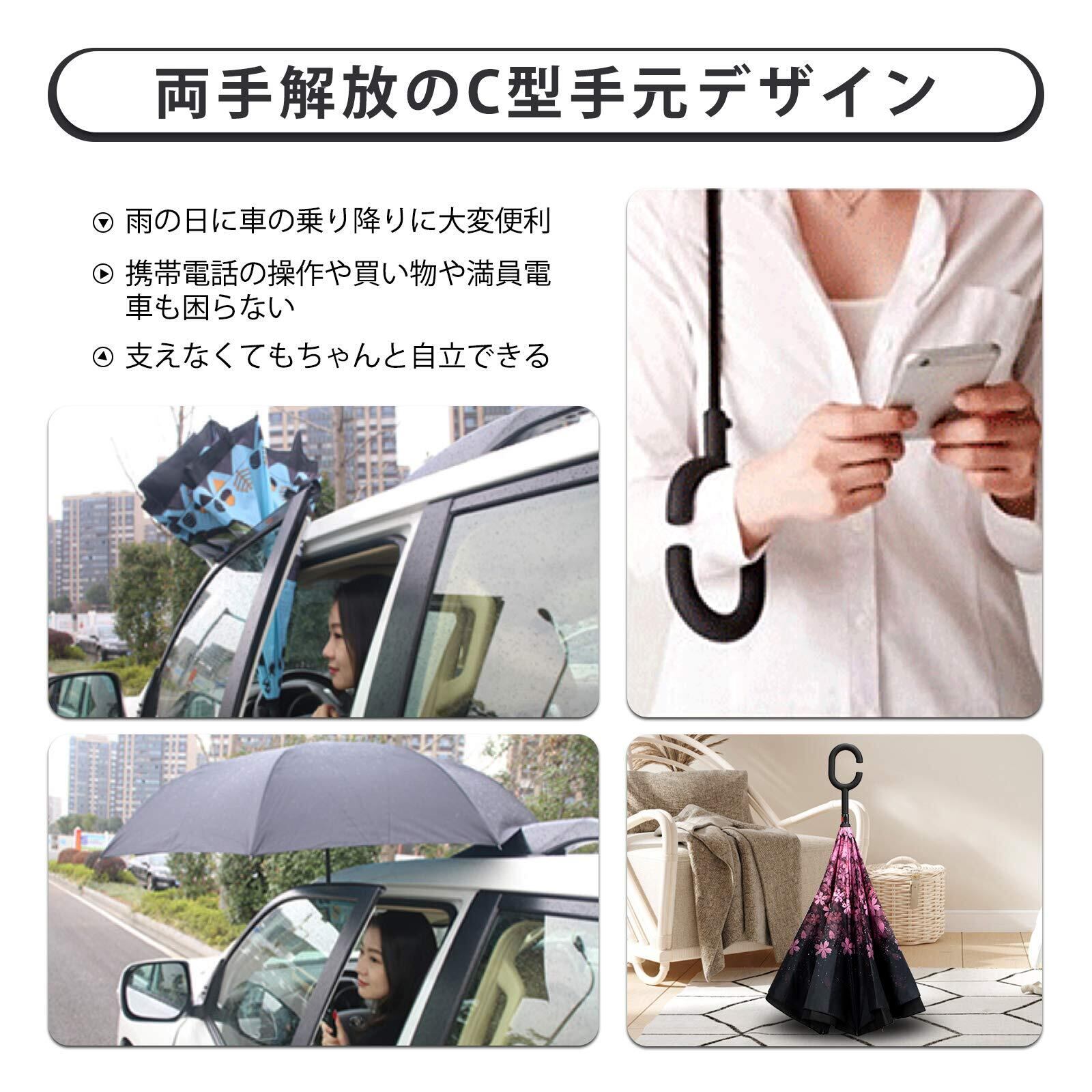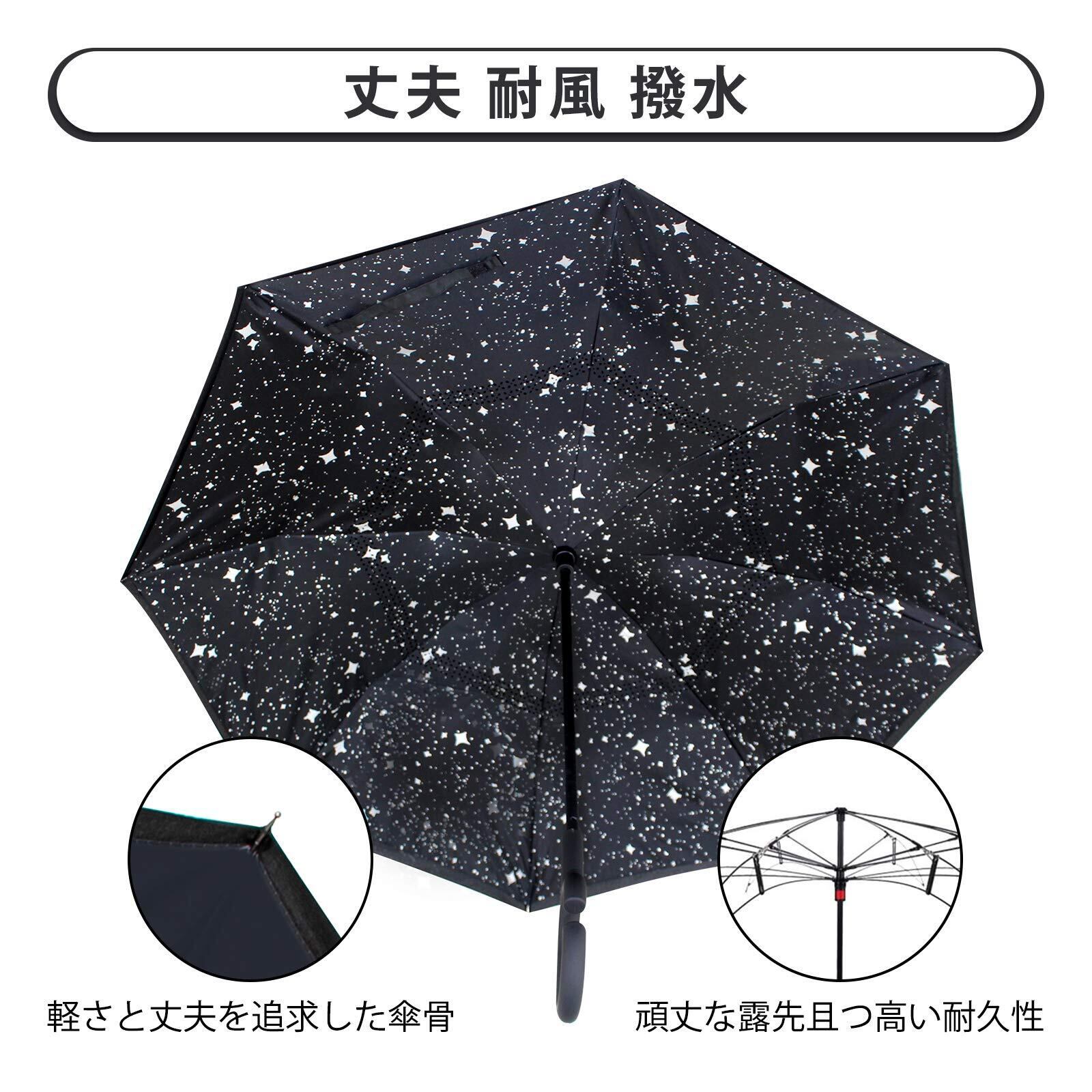 長傘 逆さ傘 逆折り式 耐風 丈夫 撥水 UVカット 晴雨兼用 完全遮光 遮熱 自立可能 車用 男女兼用 熱中症対策 台風対応 梅雨季節に大活躍 収納ポーチ付き