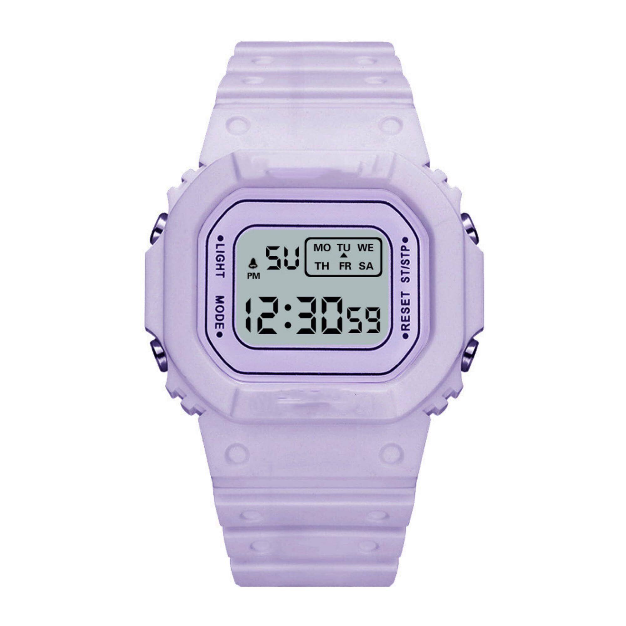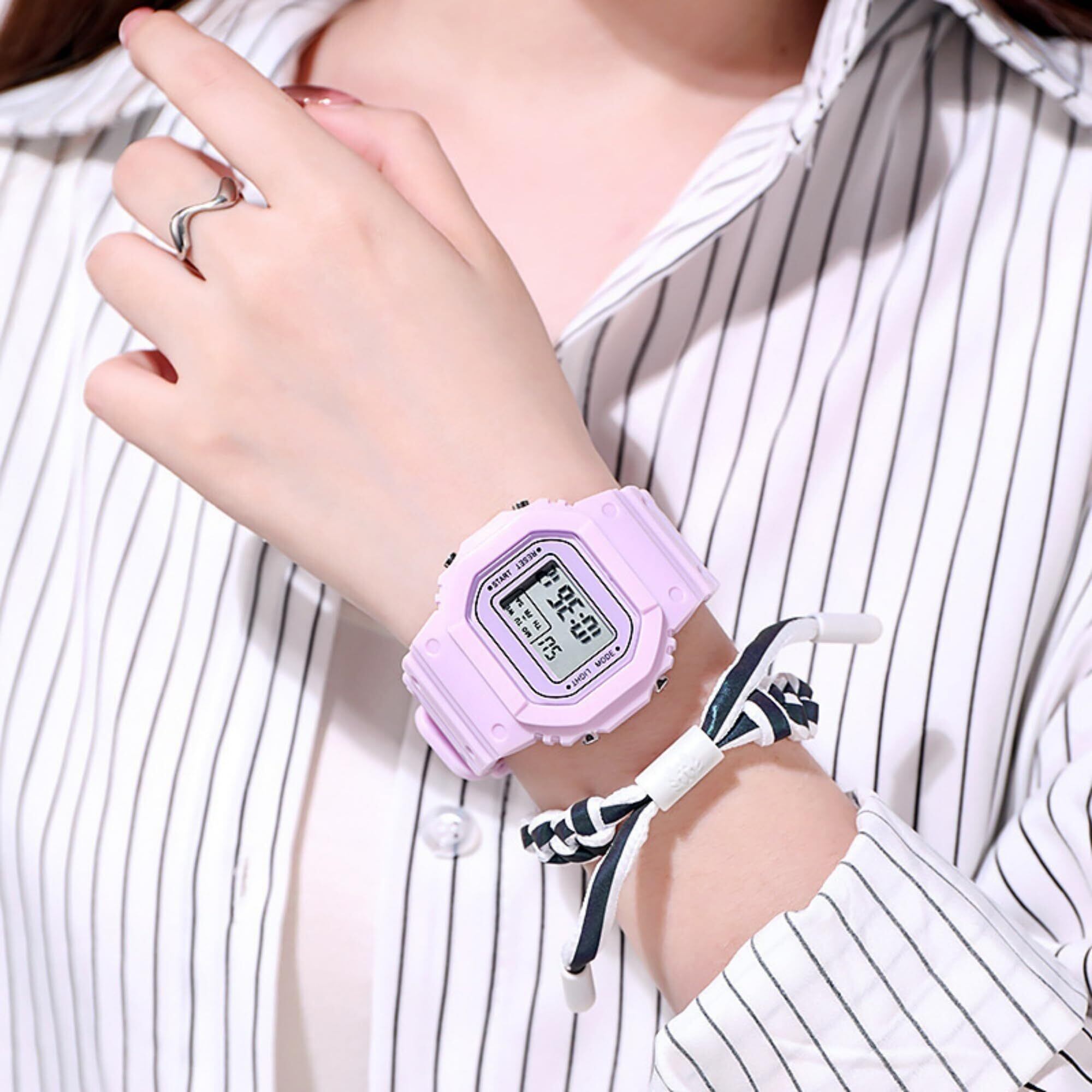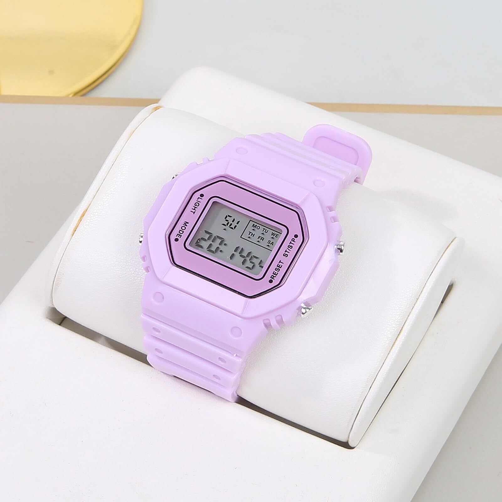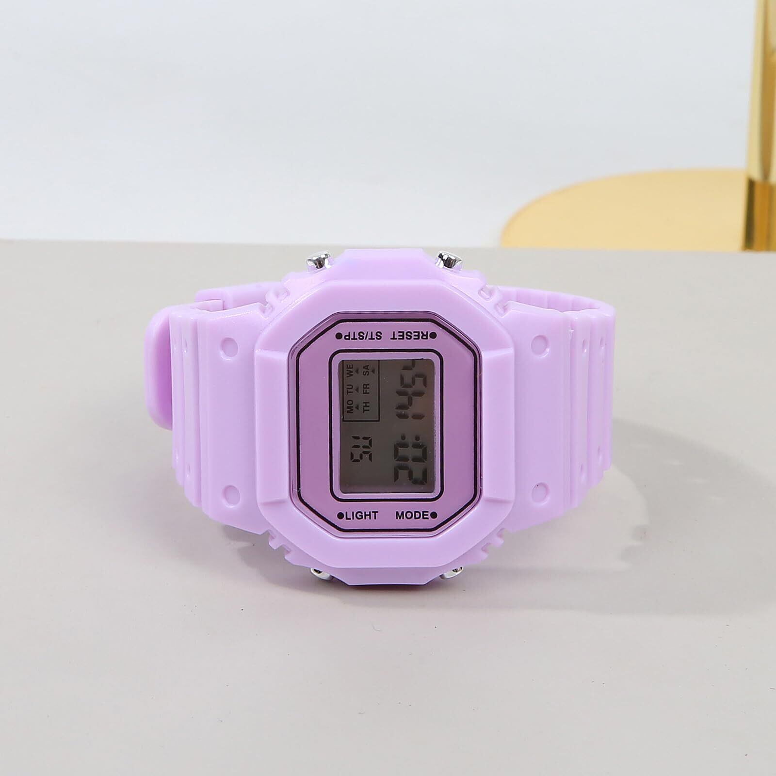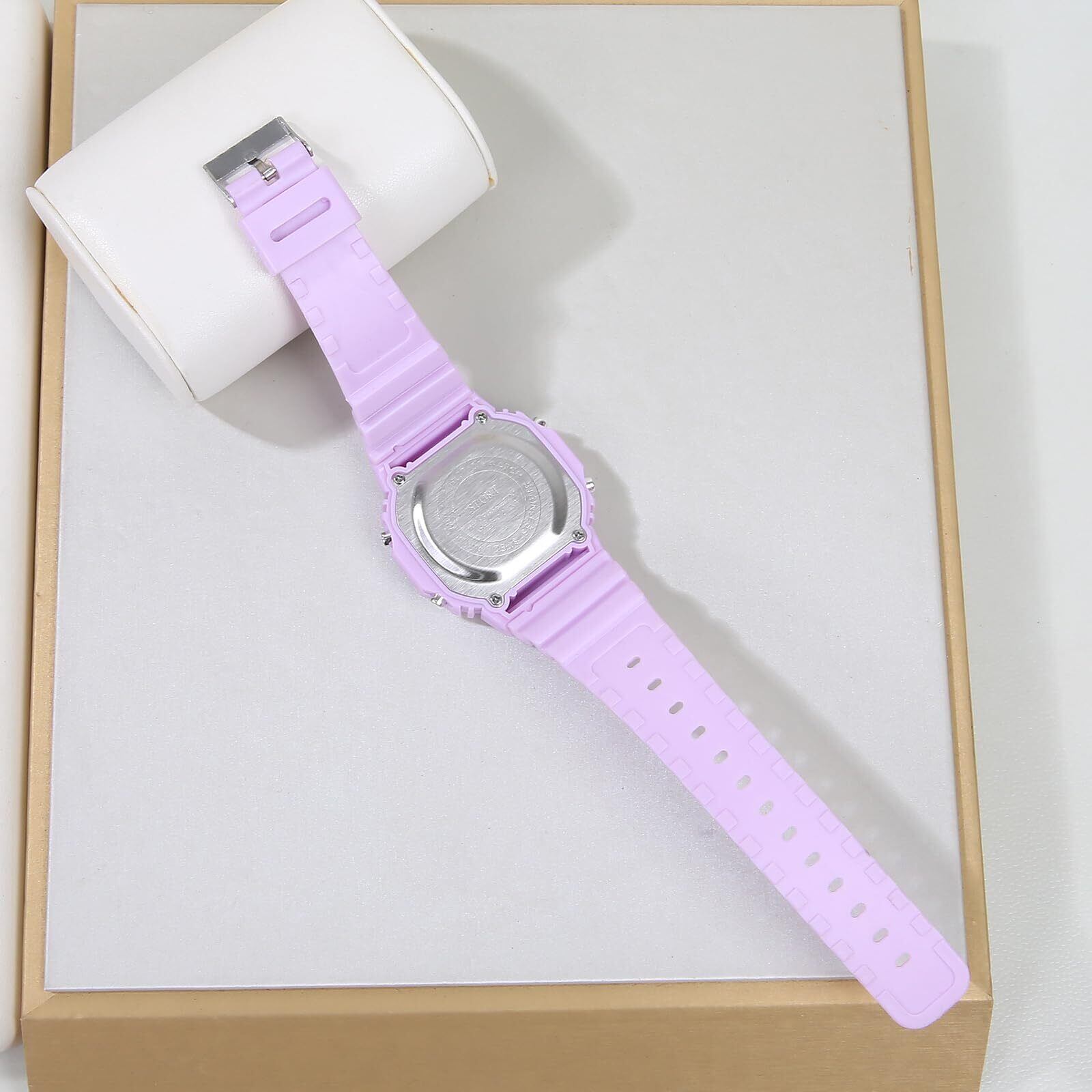 【在庫処分】キッズ腕時計 ガールズデジタル 子供用 カラー豊富 男の子 女の子 曜日表示 目覚まし時計 子供の日 入学 通学 入園 通園 新学期 誕生日 お祝い プレゼント (4.20-紫)
