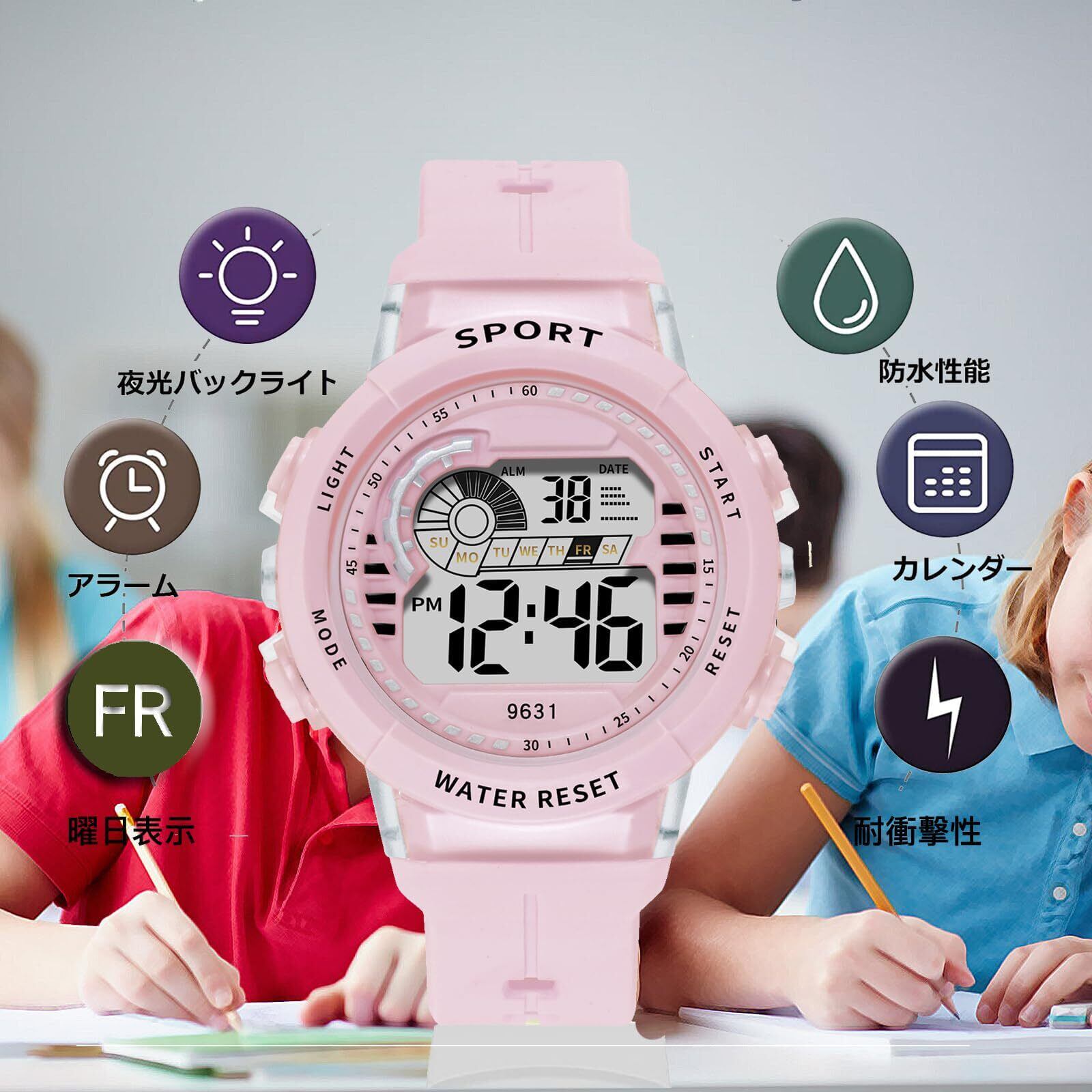 デジタル腕時計 防水 腕時計 ガールズ 時計 多機能 ストップウォッチ アラーム スポーツ/カジュアル/通学 カラー豊富 男の子 女の子 曜日表示 目覚まし時計 LED アナログ表示 オシャレ かわいい 小学生/中学生 プレゼント