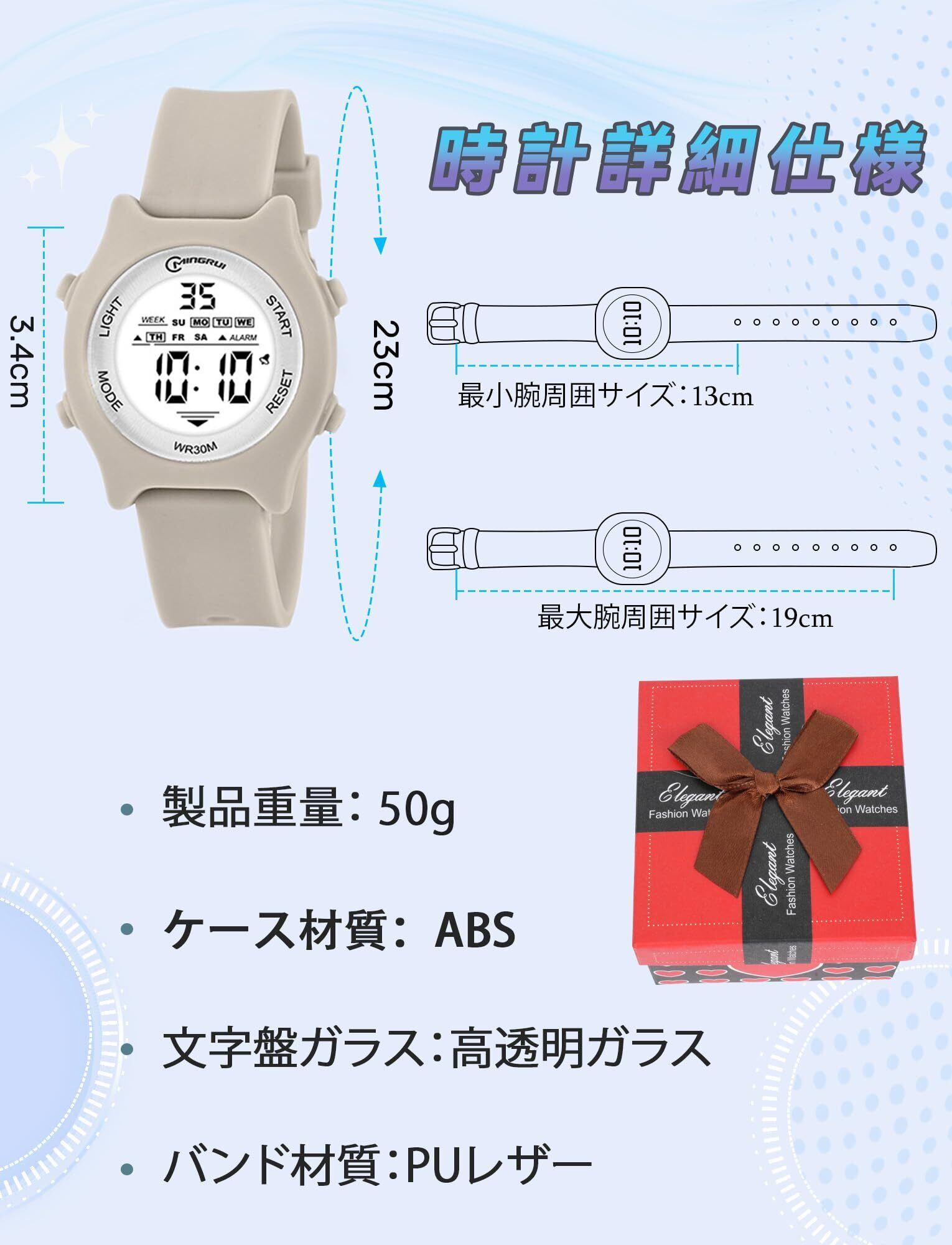 Maeau 子供腕時計 ガールズ ボーイズ スポーツウォッチ LED かわいい 多機能 ストップウォッチ 防水 オシャレ 目覚まし時計 日付曜日表示 キッズ カラー豊富 デジタル表示 男の子 女の子 ファション 快適 プレゼント 入学 通学 入園 子供の日 新学期 アプリコット