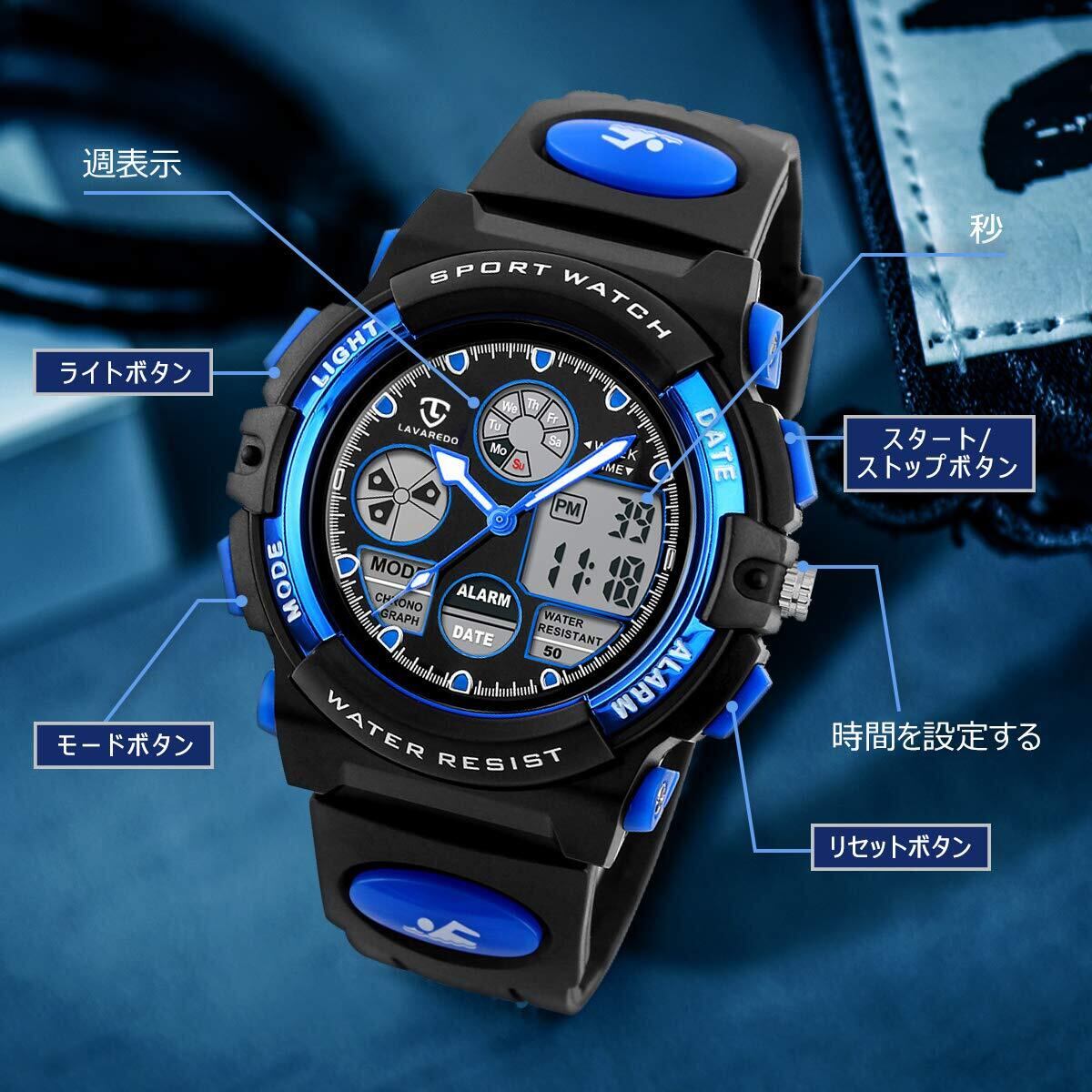 【新春セール】子供腕時計 ボーイズスポーツウォッチ アウトドア多機能防水 アラート 日付曜日表示 デュアルタイム LED アナログ表示 女の子男の子 デジタルウォッチ (蛍光ブルー)