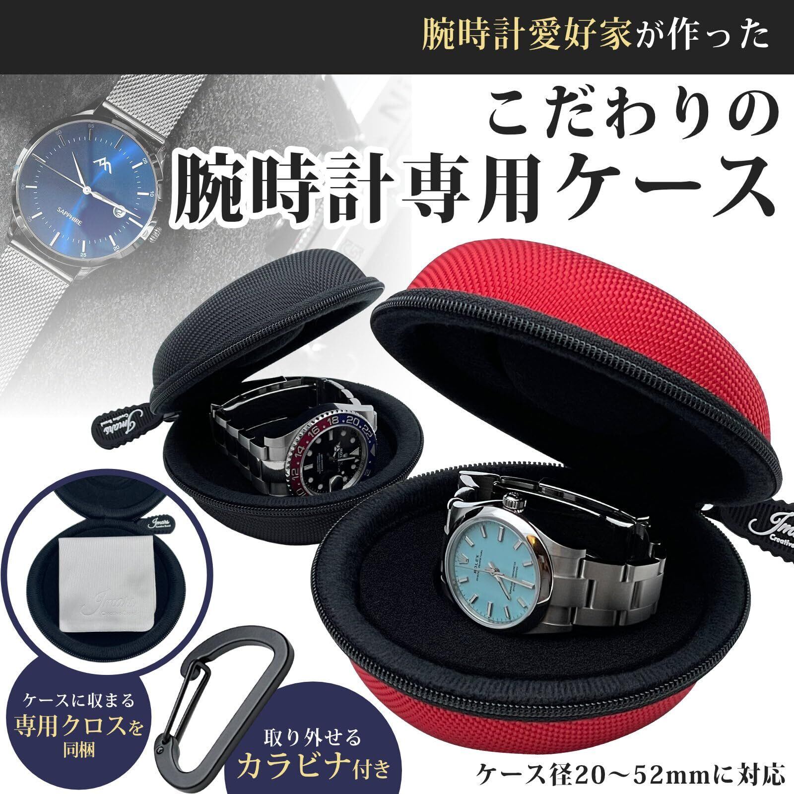 【人気商品】JMARS 腕時計 携帯ケース 『時計を守るクッション付き』 国内評価機構にて落下衝撃試験済|ROLEX・Apple Watch・G-SHOCKにも対応 (ブラック)