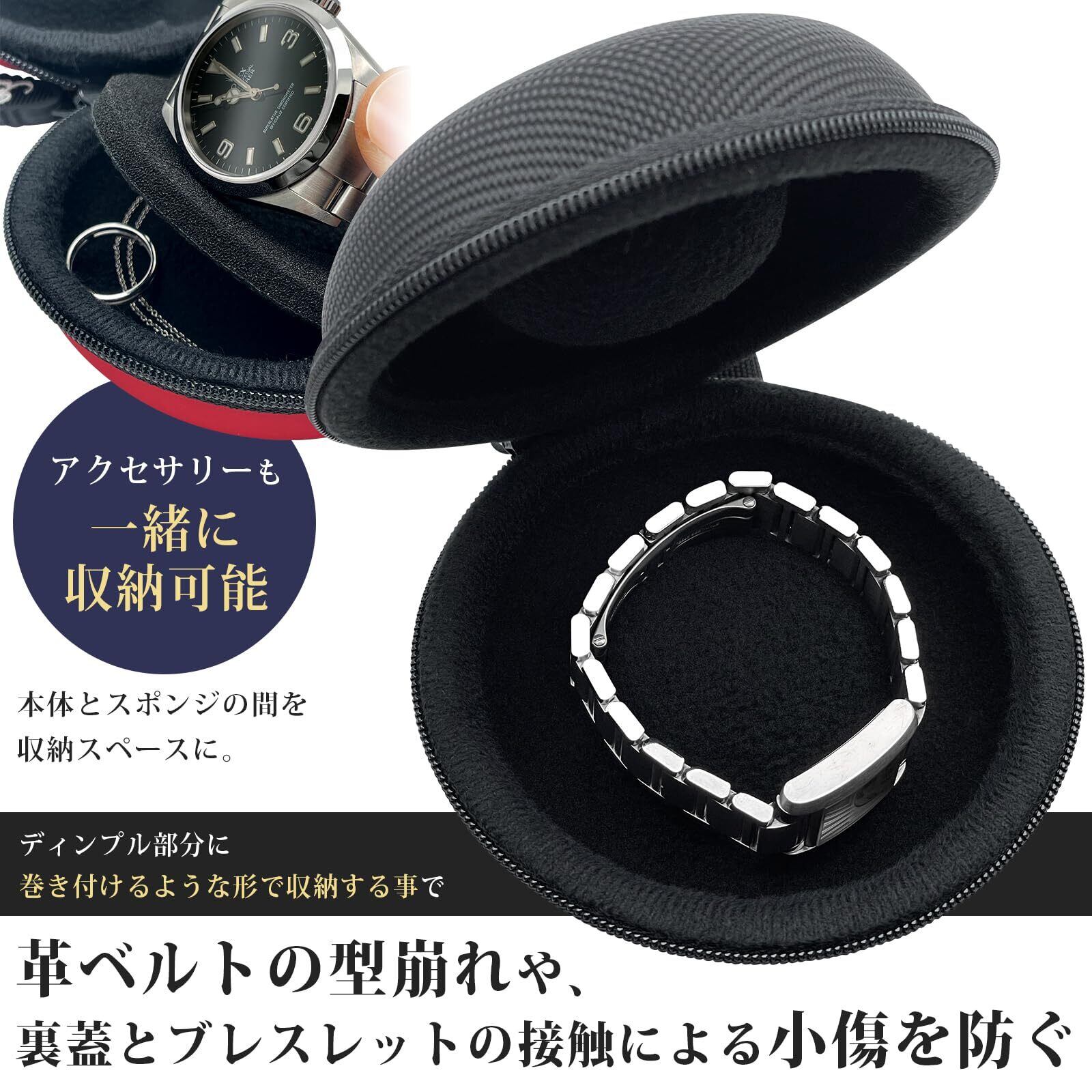 【20~52mmの腕時計に対応】 小さなレディース時計から、直径50mmを超える大型ダイバーズウォッチまで対応。厚みの異なる着脱式スポンジが付属しており、機械式や電波時計、スマートウォッチの形状にも柔軟に対応。ROLEX、Apple Watch Ultra、G-SHOCK、SEIKOスポーツモデルにもフィットします。