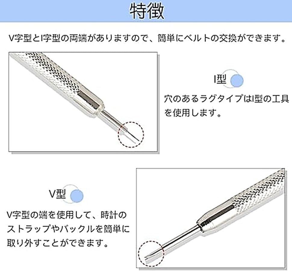 特徴:この工具は、V字とI型に分けられており、革バンドや金属バンドのバネ棒外しに対応しています。1本で様々な用途に使用できます。