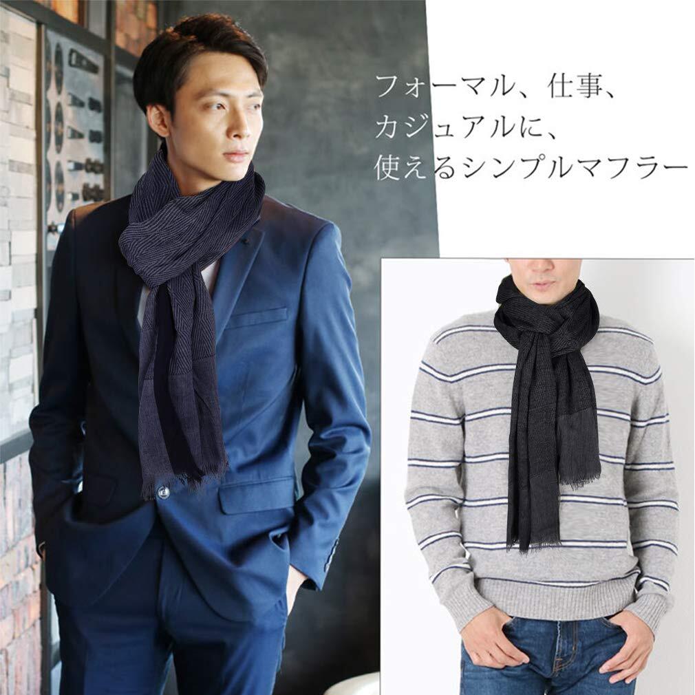 【2022最新】[DAMILY] マフラー メンズ ストール 大判 秋冬 男性用 マフラー 暖かい コットン スカーフ ショール 中厚手 冷房対策&防寒対策 プレゼント用 200cm×80cm(黒&ネイビー)