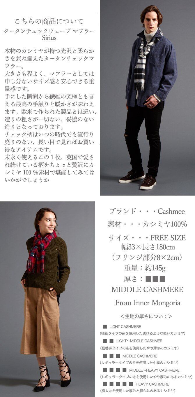 [Cashmee] ch33 カシミヤ 100% 至高の品質 カシミア タータンチェック ウェーブ マフラー Sirius メンズ レディース