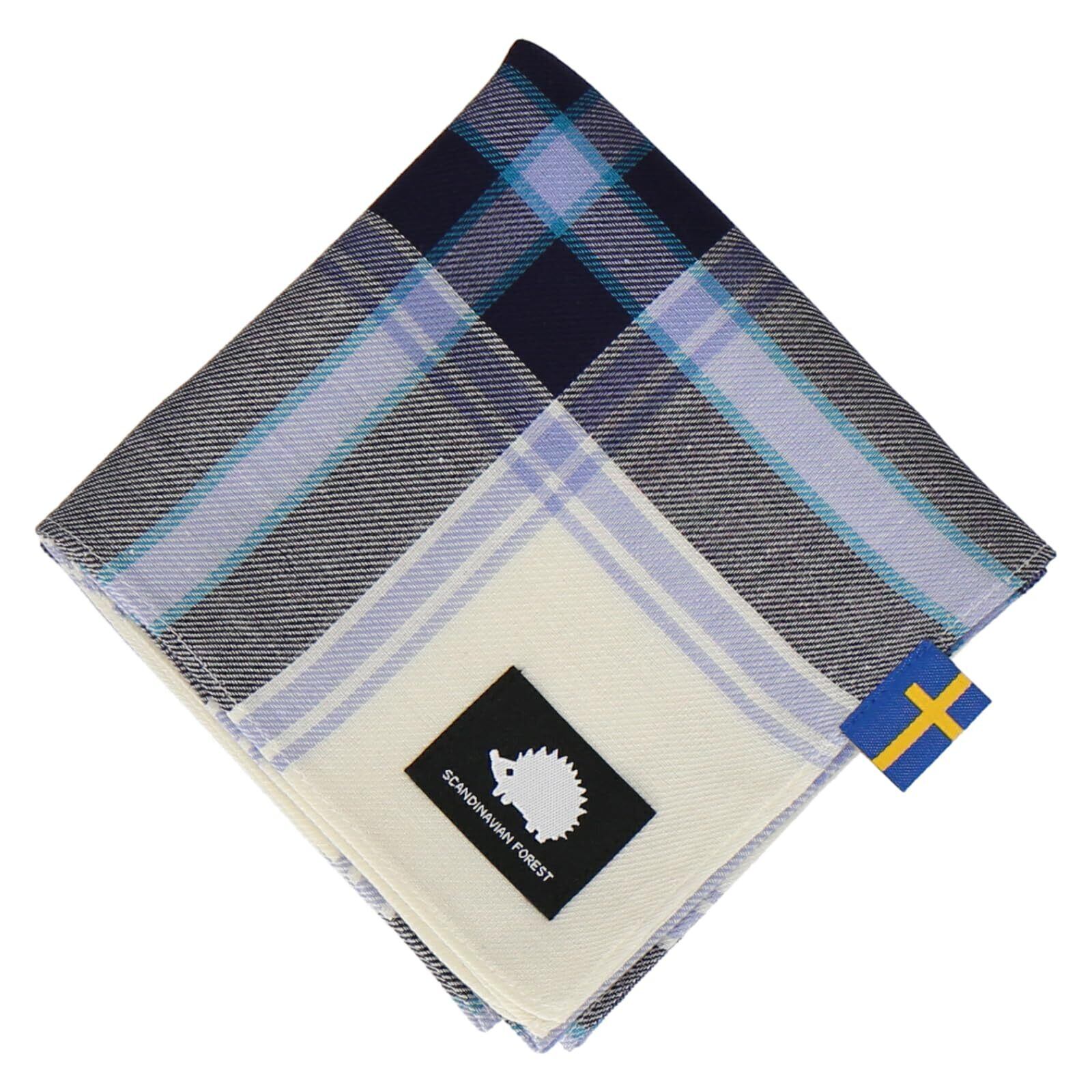 【SCANDINAVIAN FOREST(スカンジナビアンフォレスト)のメンズ 先染めハンカチ】普段使いしやすいベーシックなチェック柄にハリネズミとスウェーデンの国旗がポイントとなったデザインのハンカチです。ちょっとしたプレゼントにもおすすめです。