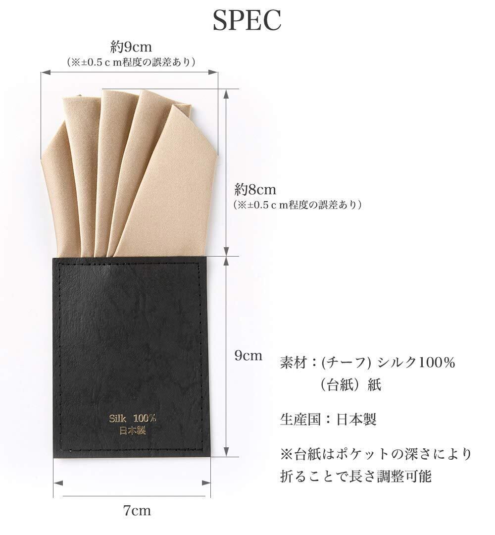 [スタイルイコール] ポケットチーフ 挿すさだけ ワンタッチ 日本製 シルク100% 絹 型崩れしない 結婚式 パーティー フォーマル スーツ ファイブピークス 台紙 一体型