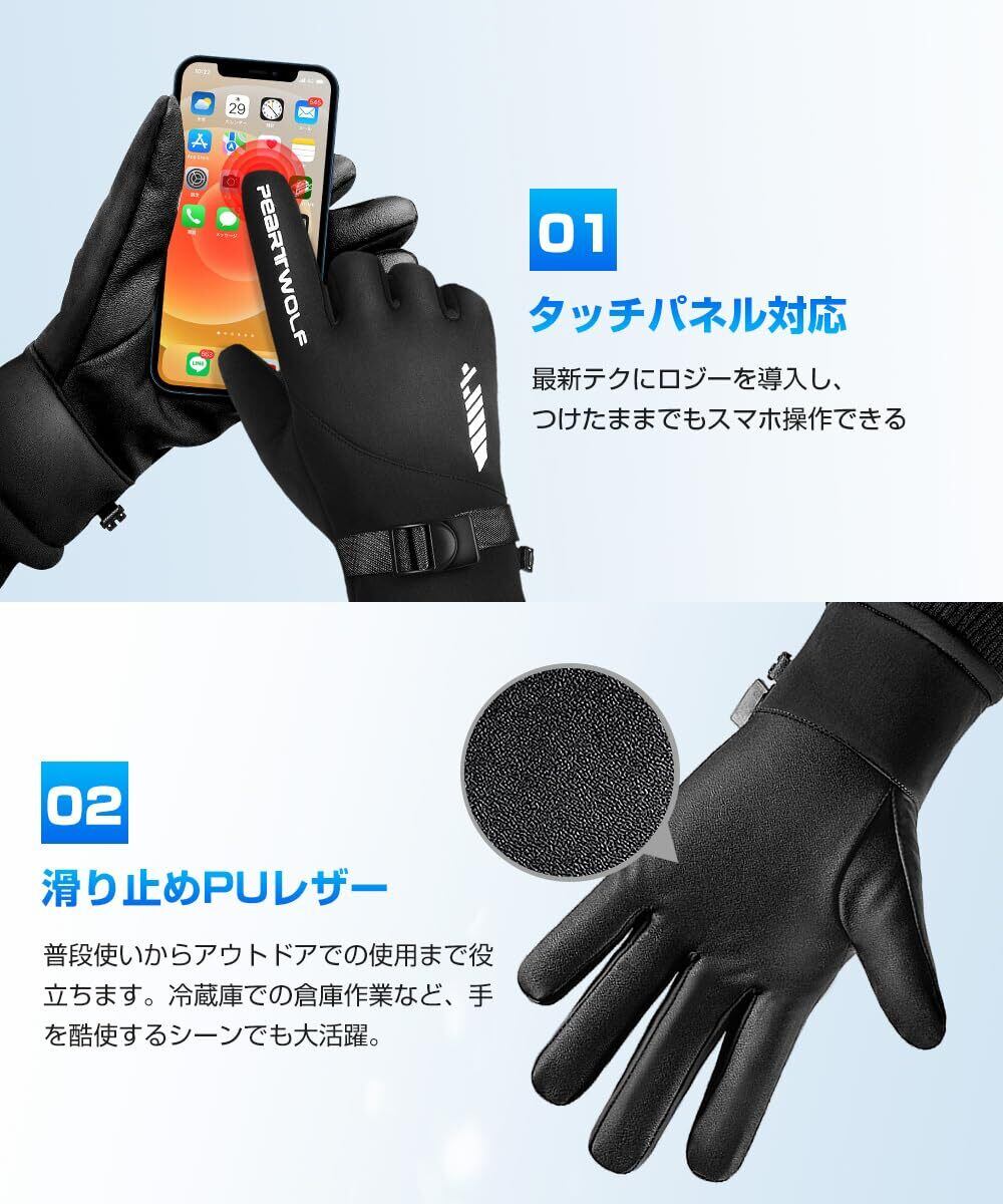 [LAZARA] 手袋 メンズ 防寒グローブ 防水 防風 タッチパネル スマホ対応 バイク スポーツグローブ アウトドア 自転車 サイクリング 釣り 登山 アウトドア スポーツ 耐磨耗性 裏起毛 保温 防寒 通勤 通学 作業用 秋冬 男女兼用