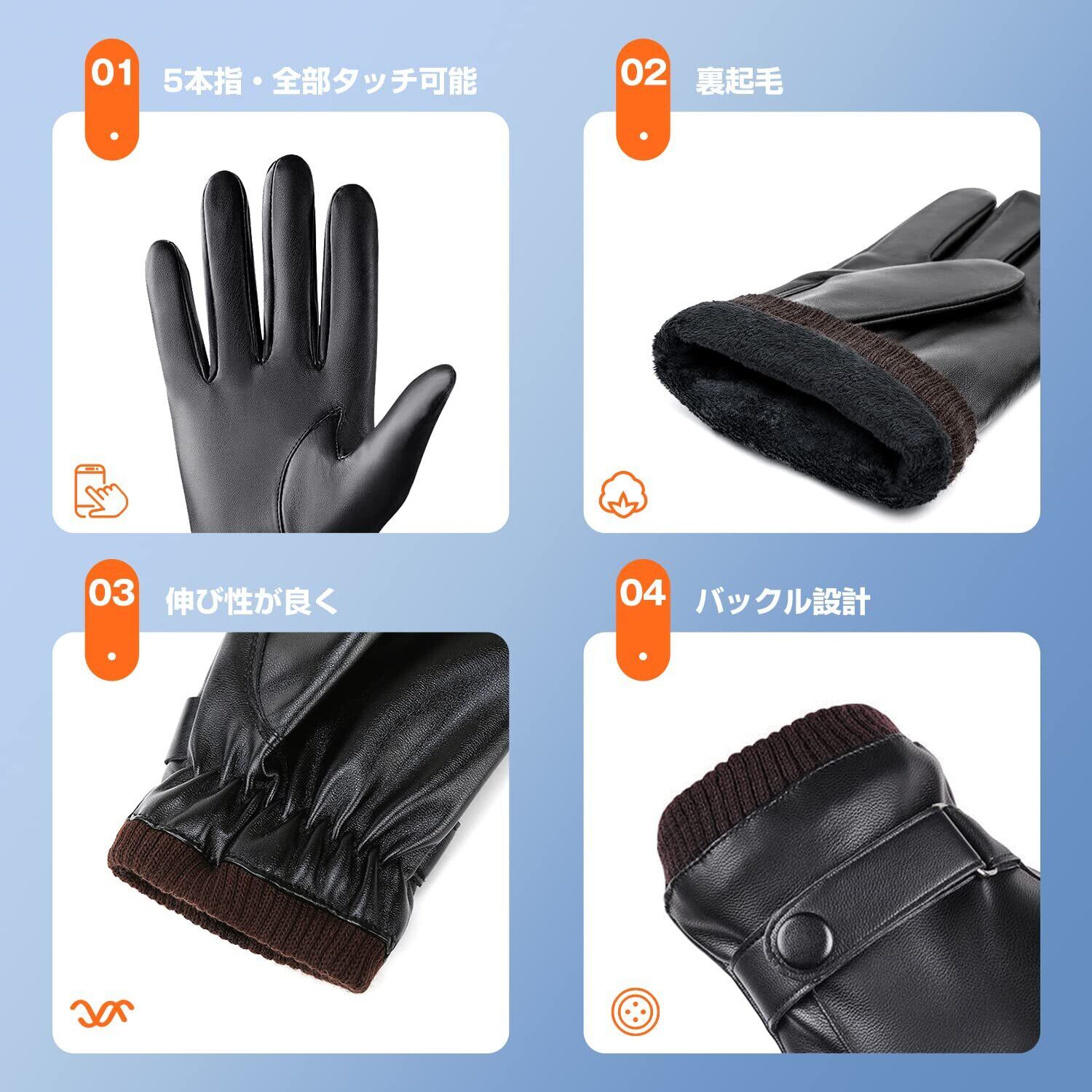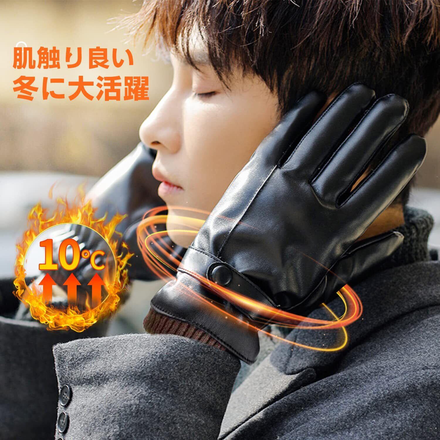[YHOYH] 手袋 メンズ 防寒 スマホ対応 革手袋 バイク レザーグローブ 裏起毛 保温 防風 撥水加工 バイク 防寒グローブ 運転 ファッション アウトドア作業 通勤 通学 冬