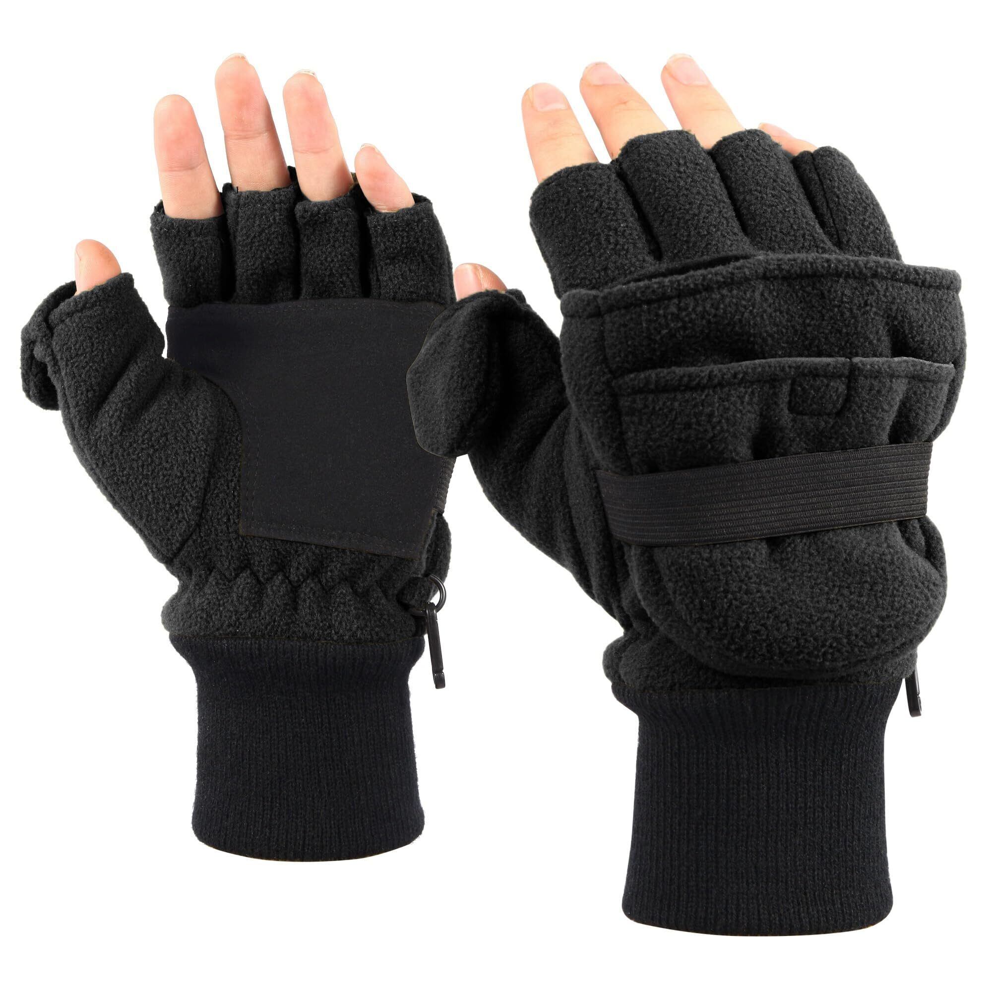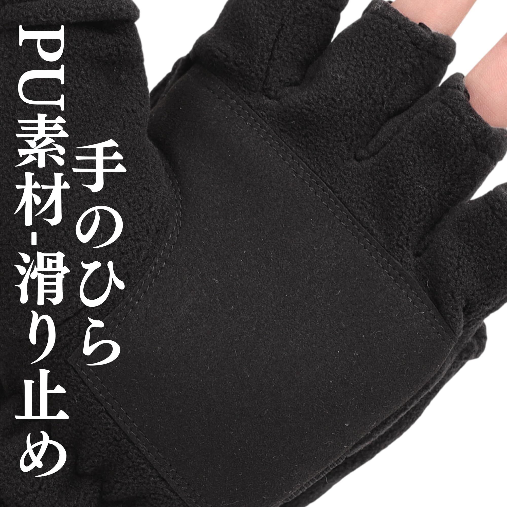 [F Flammi] メンズ手袋 防寒 2WAY 半指グローブ 指なし タッチパネル対応 アウトドアグローブ 冬用 保温 滑り止め 作業 通勤 通学 運動