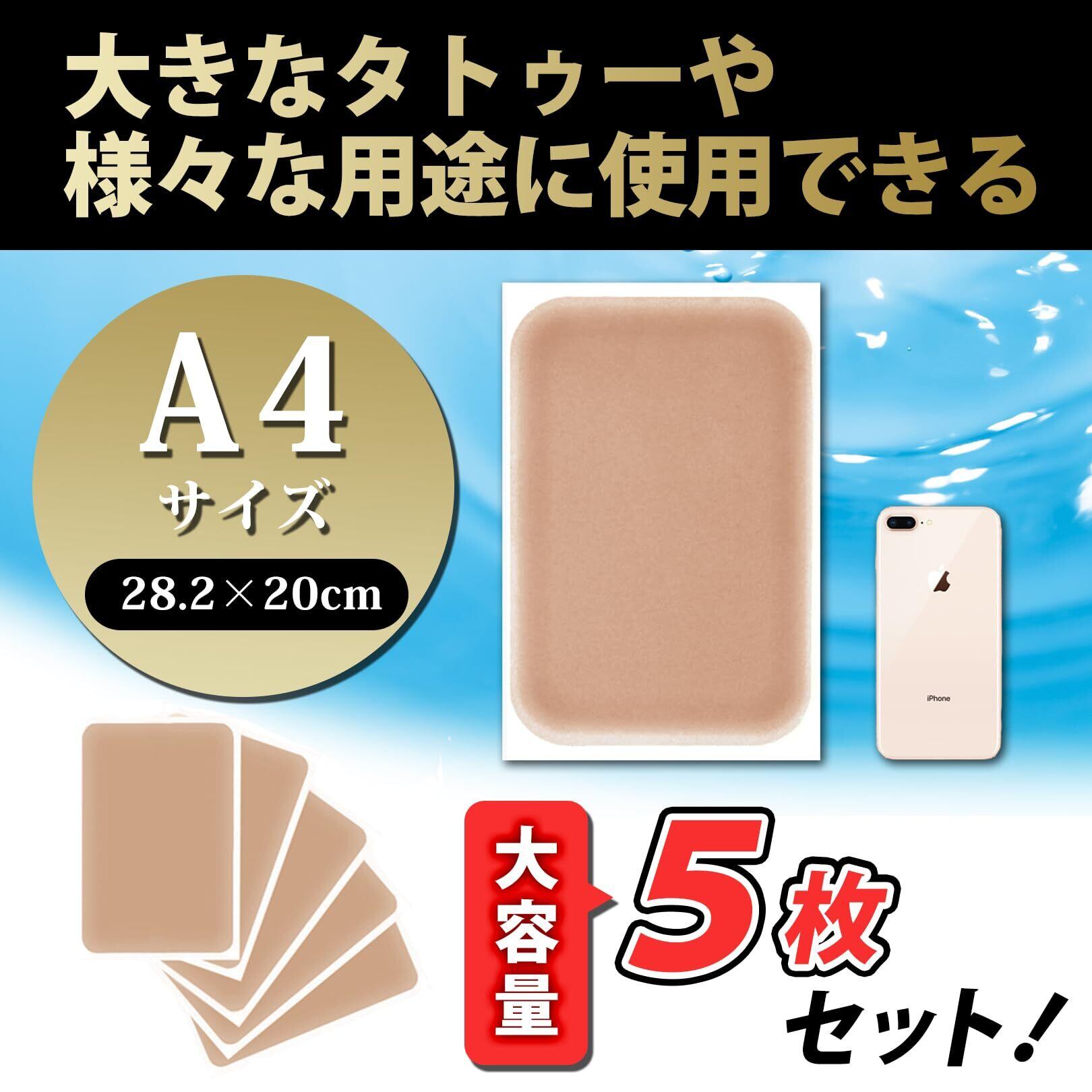 sac taske タトゥー隠し シール 刺青 入れ墨 隠す 防水テープ 特大 大判 A4サイズ (肌色 5枚セット)
