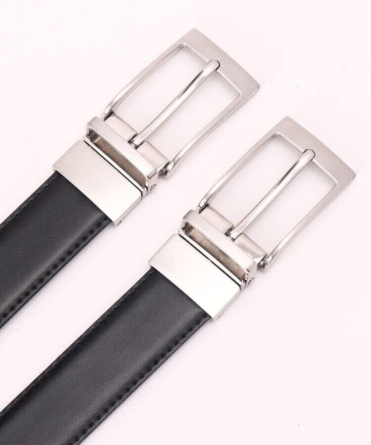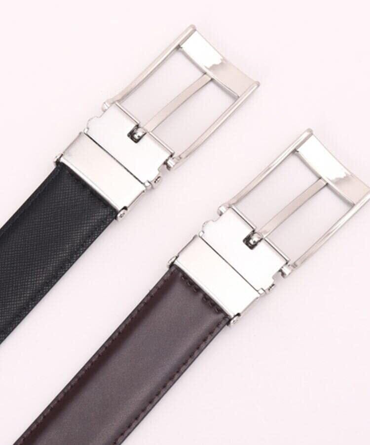 [型番:G8701030]簡単サイズ調整の定番リバーシブルベルトカラーBOXにリボンを添えた特別感あるBOX入りの仕様はGIFTにも人気!【デザインポイント】簡単サイズ調整の効く定番のドレスリバーシブルベルトは不動の人気商品GIFTにも大変喜ばれるスタンダードアイテムとなっています。【選べるベルト帯】019カラーは、黒のリバーシブル仕様(表側)美しい光沢のスムースブラック×(裏側)サフィアーノ調型押しブラック519カラーは、黒と茶のリバーシブル(表側)美しい光沢のスムースブラック×(裏側)スムースブラウン593カラーは、黒とネイビーのリバーシブル(表側)美しい光沢のスムースブラック×(裏側)スムースネイビー554カラーは、ブラウンスムース×(裏側)スムースキャメル*019カラーと519カラーの表側は同じになります。リバーシブルはバックルがくるっと回転して、簡単に裏表がその日のコーディネートに合わせられる仕様になっています。カラーBOXは玄関やお部屋の小物入れとして、二次使用に使ってもおすすめです。カンタン装着のオリジナルリボン付きです。この商品はWEBと一部店舗限定展開の商品になります。大切な方へのギフトとしてもお薦めです。