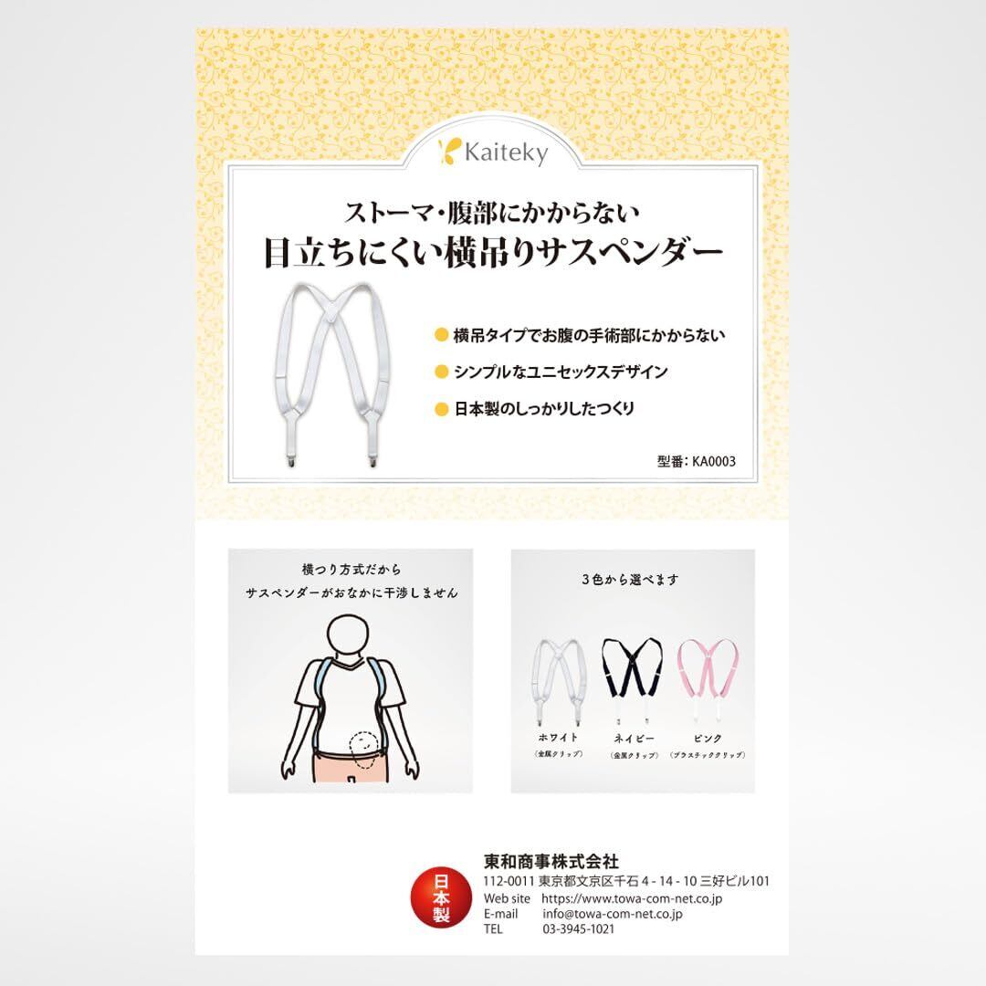 【特価セール】[Kaiteky] ストーマ・腹部にかからない目立ちにくい横吊サスペンダー 調節可能 着脱しやすい (日本製/ユニセックス) (ネイビー)