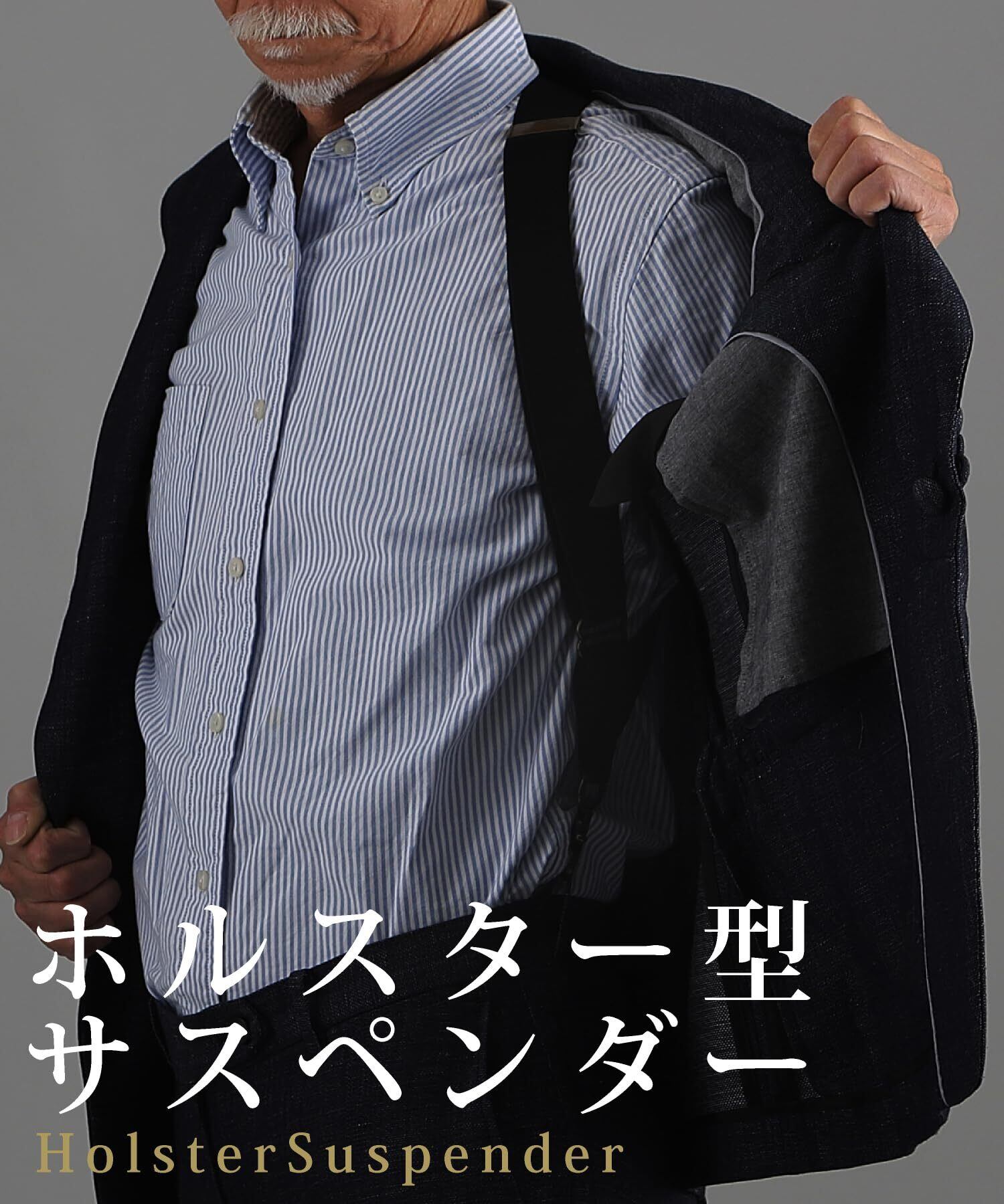 【2点留め、着脱簡単】この商品は、両側の2点留めのホルスター型サスペンダーなので着脱が簡単、トイレの時も楽に脱げます。両サイドに取り付けるため、上着やベストを着るとサスペンダーが隠れます。