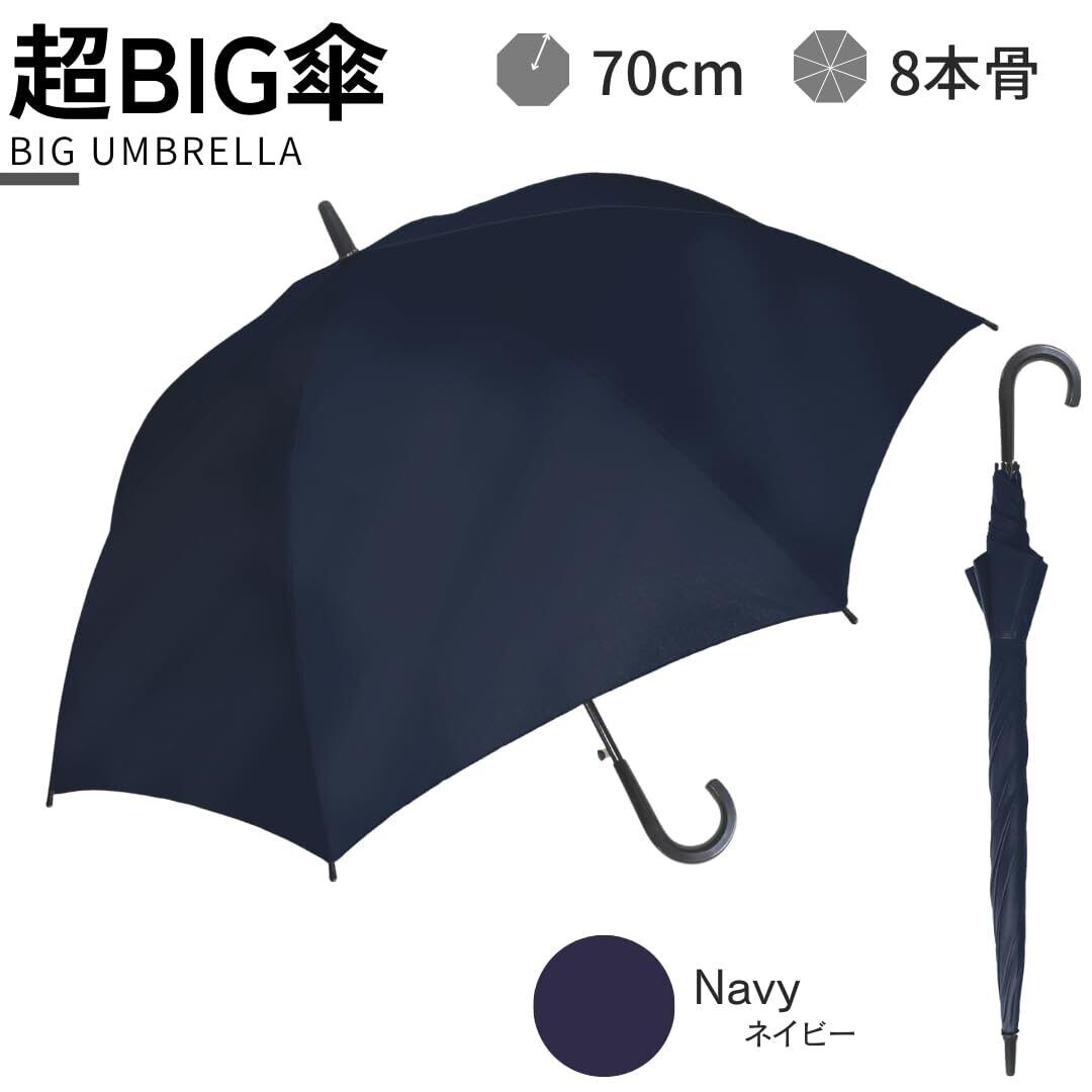 まるで生地傘!70cmのビッグサイズ、尚且つ耐風仕様で強い雨もしっかりガード!