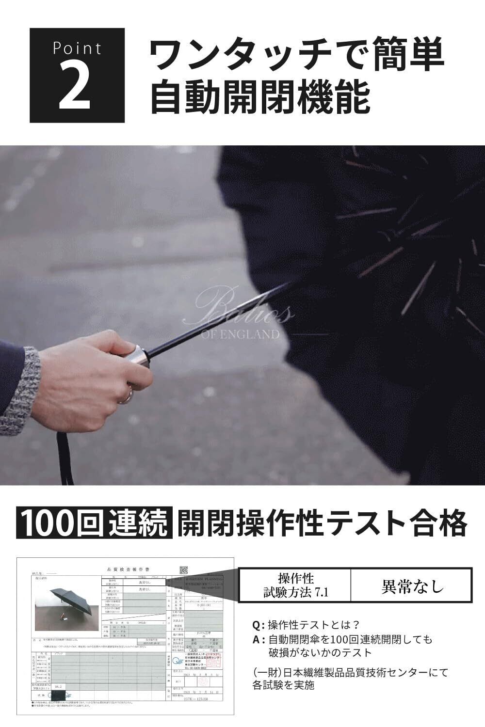 【国内第三者検査機関テスト済み!高い耐久性】500回連続使用テスト、風速15m/sの耐風テストに合格。(日本洋傘協会JUPA基準)Baliosは1本の傘を完成させるまでに146にわたる工程と12カ所の検査を行なっています。それにより耐久性、品質、共に優れた製品を完成させることができます。オリジナルの骨組には、ハイグレードスチールと高品質なグラスファイバーを使用。50T (太さ) のハイグレード硬化ブラックスチールをシャフトとして使用 (他社製品は30T~40Tスチールまたはアルミニウム) し、剛性と強度を生み出しています。(品質には万全を期していますが、強風の中での傘のご使用は危険ですのでお控えください)