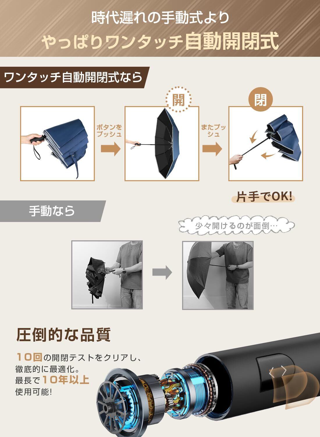 【ワンタッチ自動開閉&片手で傘開閉】0.2秒が濡れない世界を創る、0.2秒で全開!従来の手開き傘より3倍速く、雨粒が肩に落ちる前に完璧防護。車を降りたり、子供を抱いたり、荷物を持っている時、おりたたみ傘は最適です。 折りたたみ式なので出張、旅行の携帯用として、車の中に常備していると大変便利です。