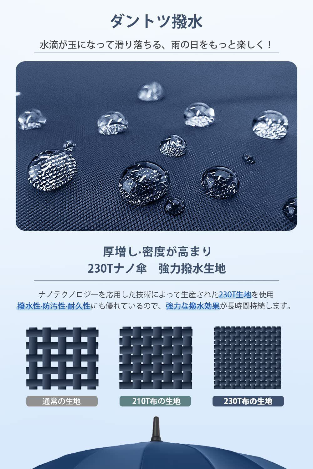 【2022最新】長傘 雨傘 【超大きいサイズ・頑丈な16本骨】 メンズ 傘 直径115cm 高強度グラスファイバー骨 ワンタッチ 自動開け ジャンプ傘 Teflon加工 超撥水 耐風 豪雨対応 梅雨対策 埋め込み式ボタン 軽量 メンズ レディース 男女兼用 紳士傘 晴雨兼用 収納カバー付き
