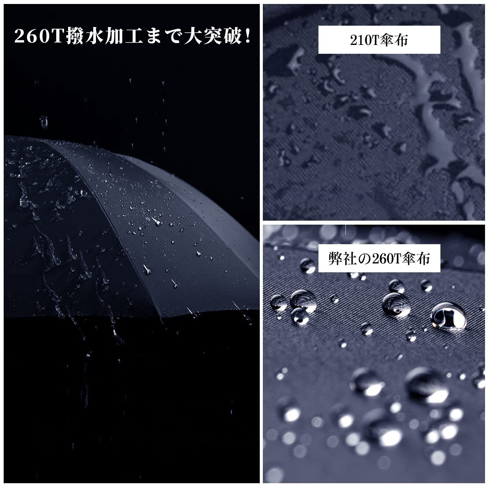 【高強度の8本骨】暴風に応対性が強くなるため、骨組みに工夫を凝って頑丈なグラスファイバー製の八本の傘骨を採用しているのおかげで、アルミニウム合金製の傘より優れた耐風性を持っています。強い風でひっくり返っても、開閉スイッチを押したら、骨が曲がることなく、すぐ元通りになります。