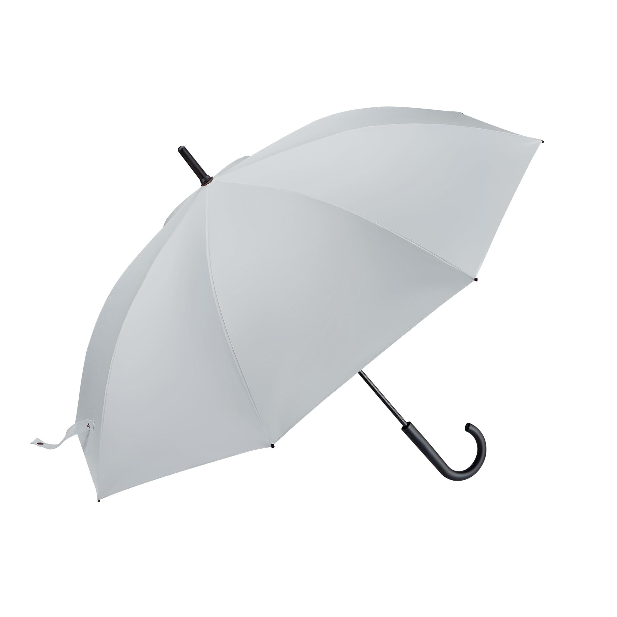 【広範囲カバーなのに軽量・計算されたサイズ感】 開いた時の直径は約100cmと、体をしっかり覆う十分なサイズを確保しながら、重量はわずか約400g、全長82cmという軽量・スリム設計を実現しました。しっかりした長傘でありながら、女性やご年配の方でも長時間持っていて疲れない軽さです。通勤・通学はもちろん、普段使いからビジネスシーンまで幅広く活躍する晴雨兼用傘です。