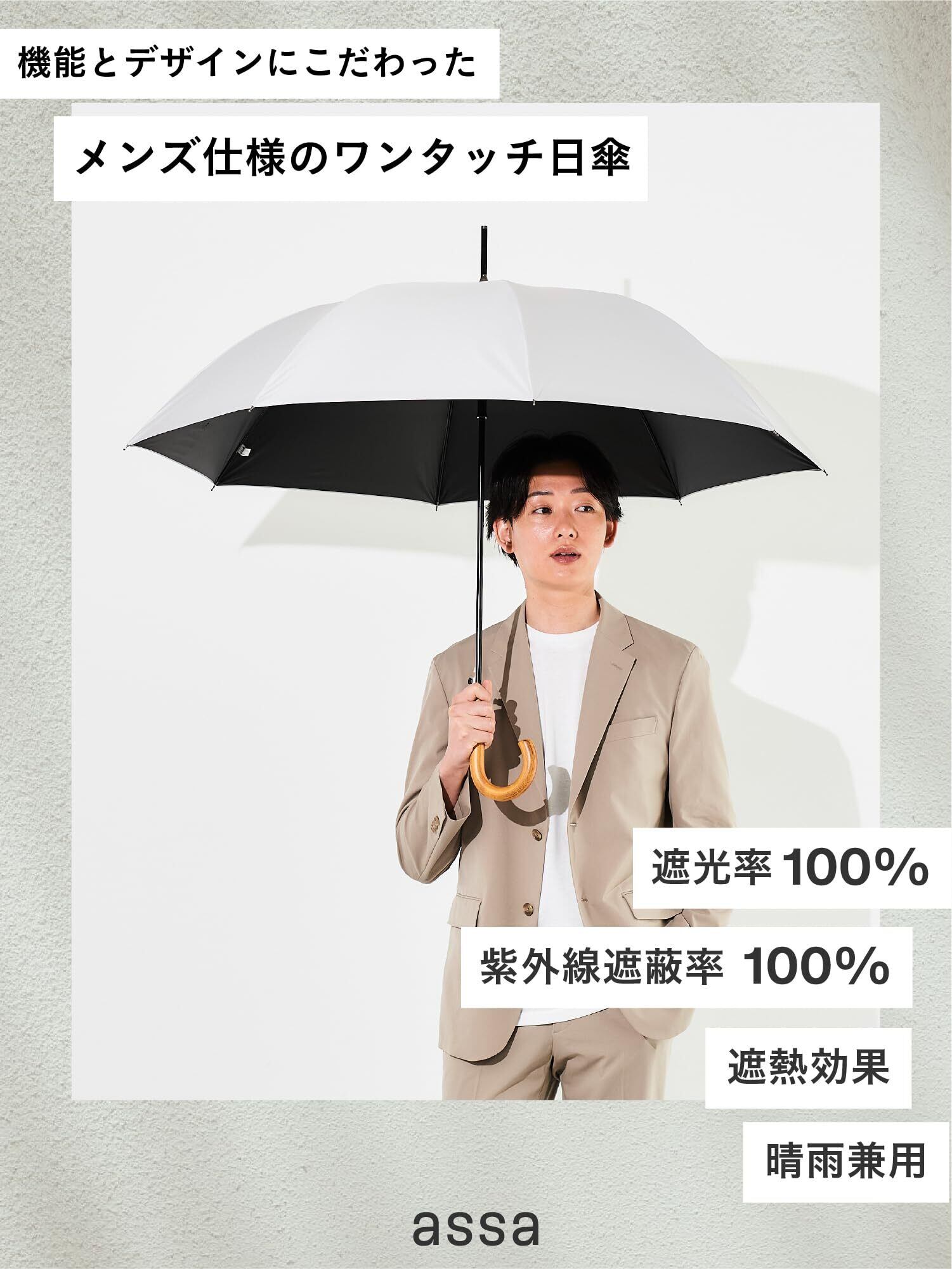 assa 日傘 メンズ 長傘 晴雨兼用 全天候 軽量 大きい 65cm ワンタッチ ジャンプ傘 木製ハンドル 完全遮光 UVカット 100% 熱中症対策 遮熱 男性用 紳士 FJ