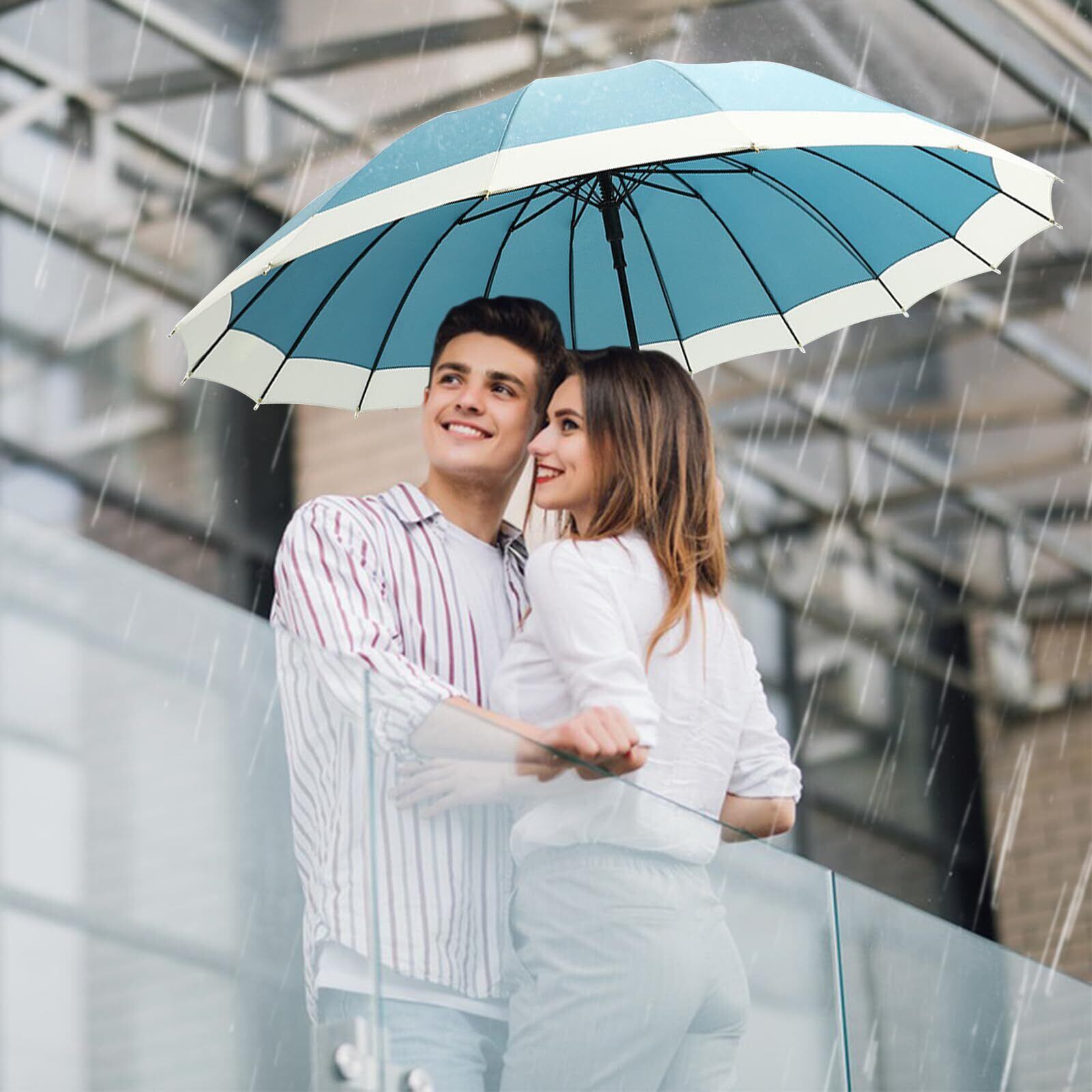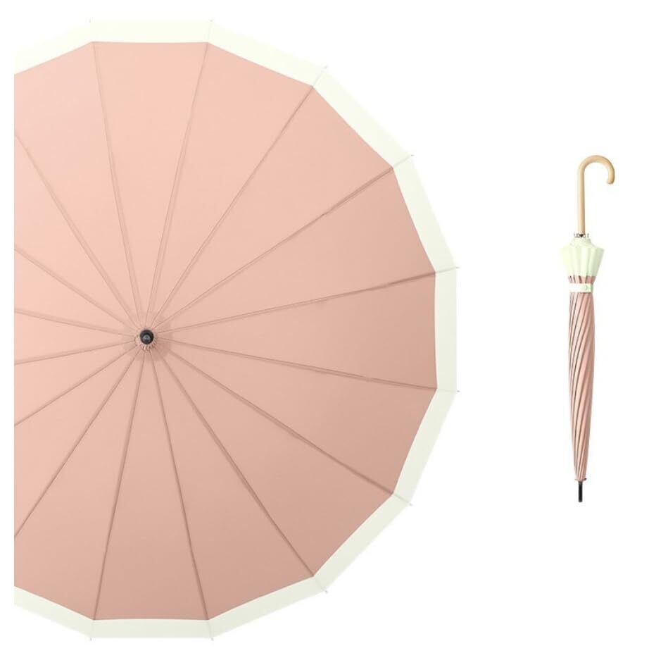 【耐強風と耐久性】16本骨が作り出す曲線が美しい円型、従来の8本骨の2倍数量で耐強風と耐久性の両面を実現できます。男女問わず使用できる傘。