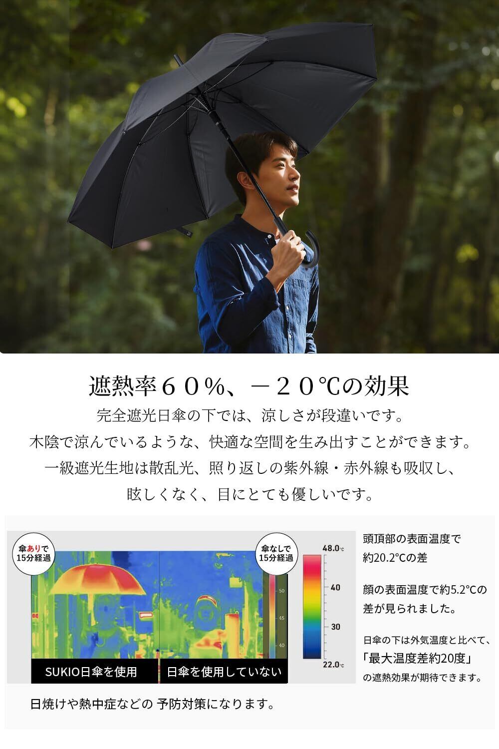 【完全遮光日傘】SUKIO 日傘 メンズ 長傘 完全遮光 8本骨 60cm グラスファイバー UVカット 100% 遮熱効果 熱中症対策 紫外線防止 晴雨兼用 超軽量 大きい レディース ワイド スポーツ観戦 通勤 通学 耐風 撥水 ワンタッチ ジャンプ傘 男女兼用