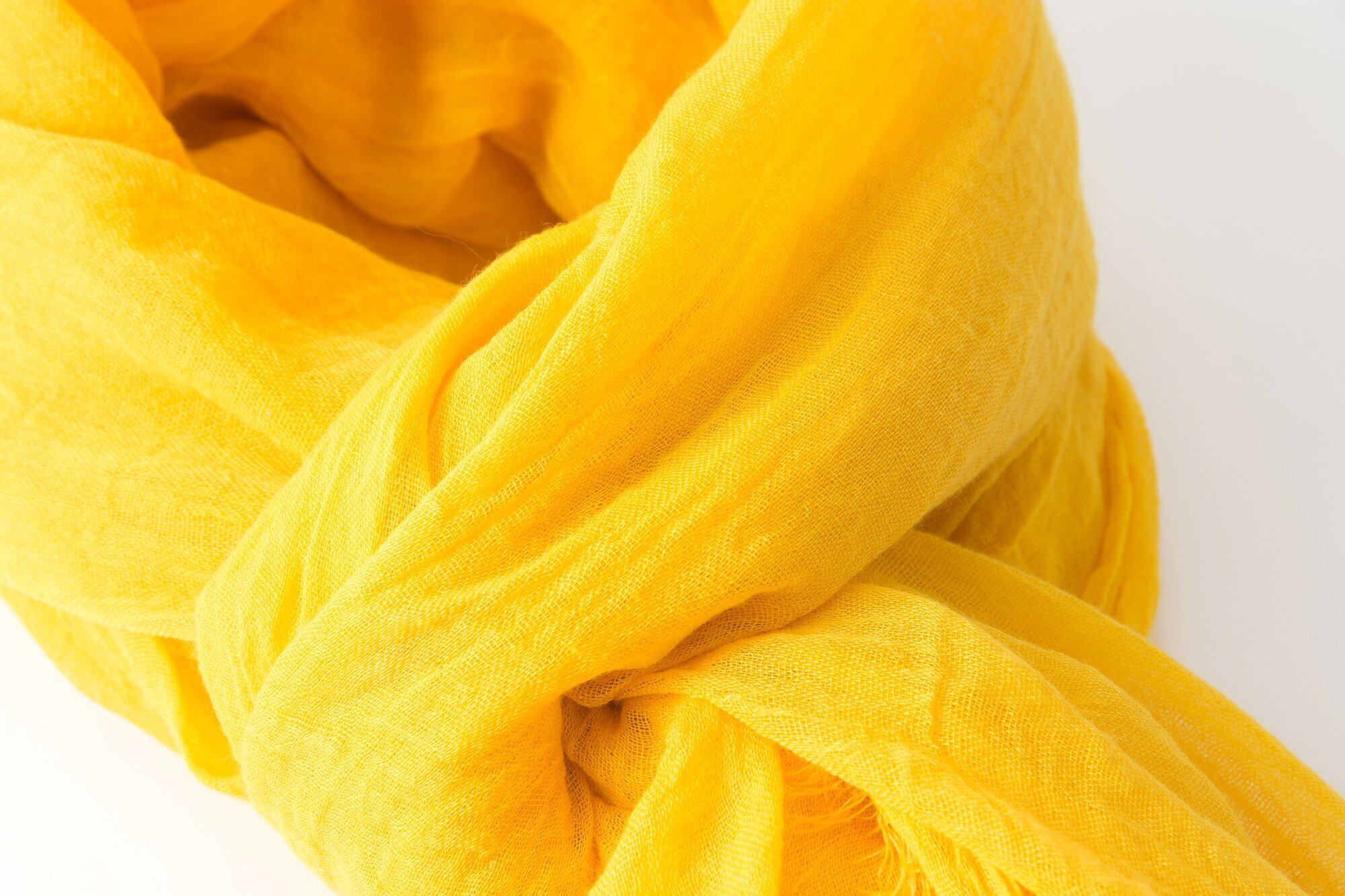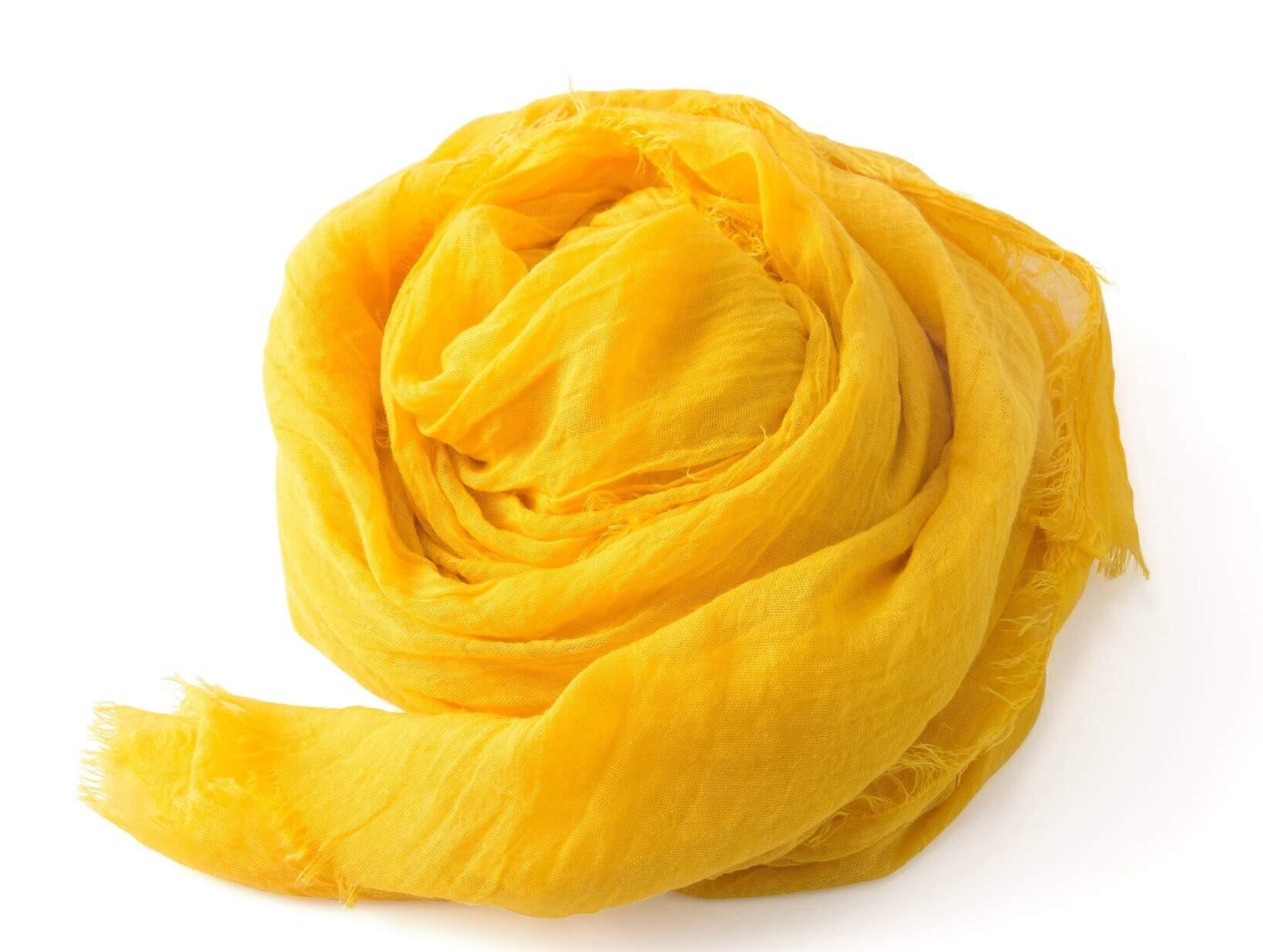 【軽くて速乾性、耐候性に優れ型崩れしにくいポリエステル生地にコットンを織り込んだ素材は肌触りが良く、発色性にも優れ、薄くて軽くふんわり柔らかく、4辺全てに短めのフリンジが付いたエレガントな大判ストールです。】