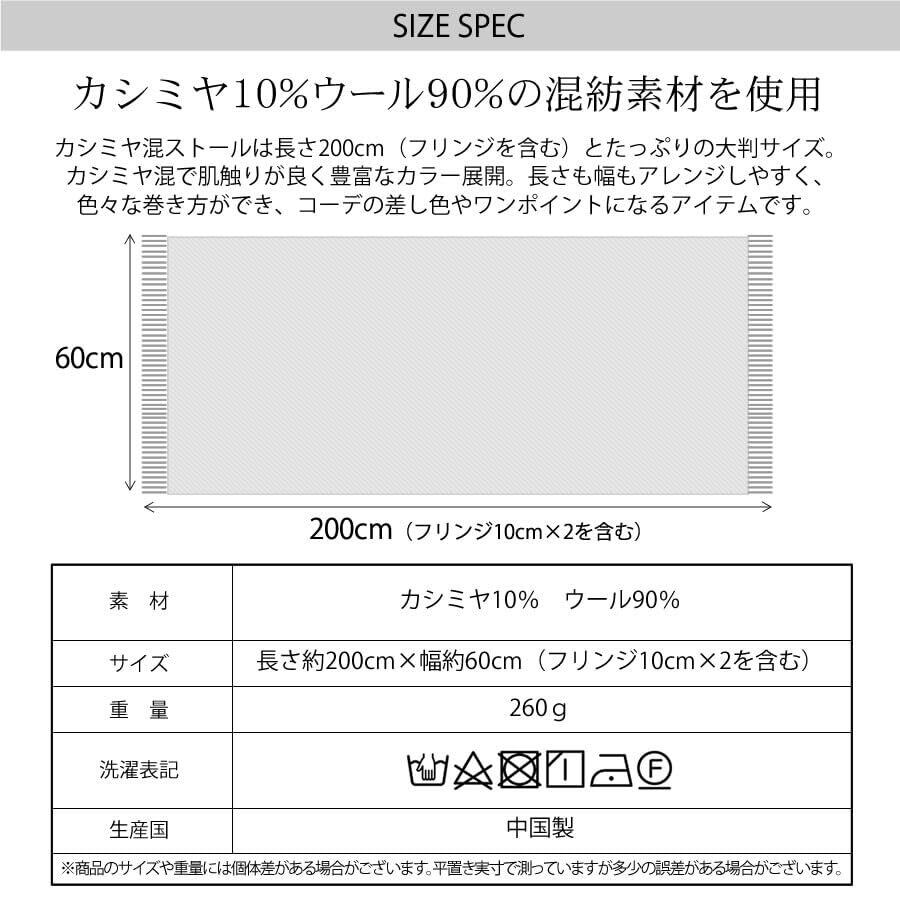 [Merfirge] ウール90%カシミヤ10% カシミヤブレンド ウール ストール【レディースメンズ共用】(60cm×200㎝)